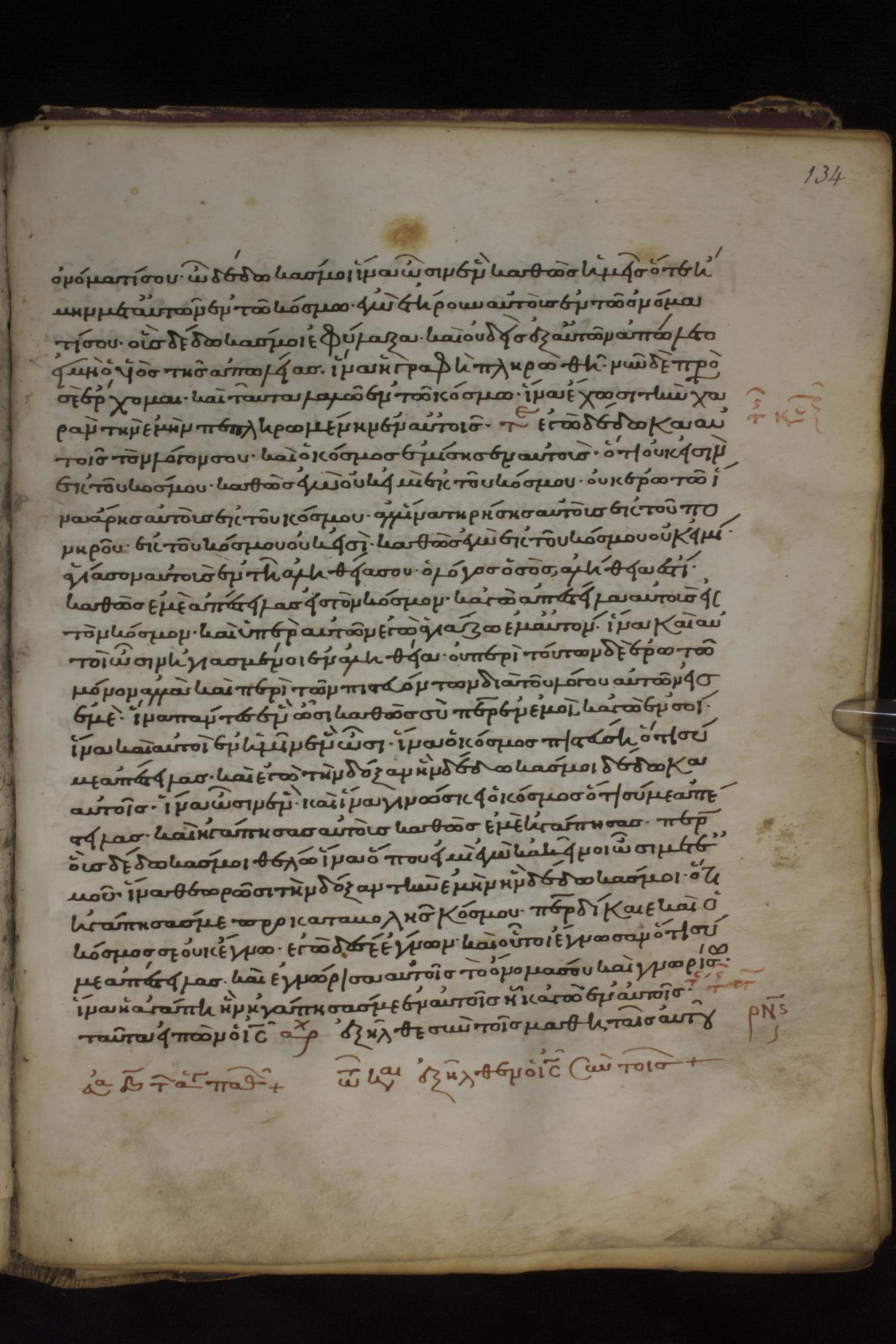 Twelfth century minuscule of the Gospels on parchment; 150 leaves, 1 column, 27 lines per column. Images were taken at the National Library of Greece in Athens.