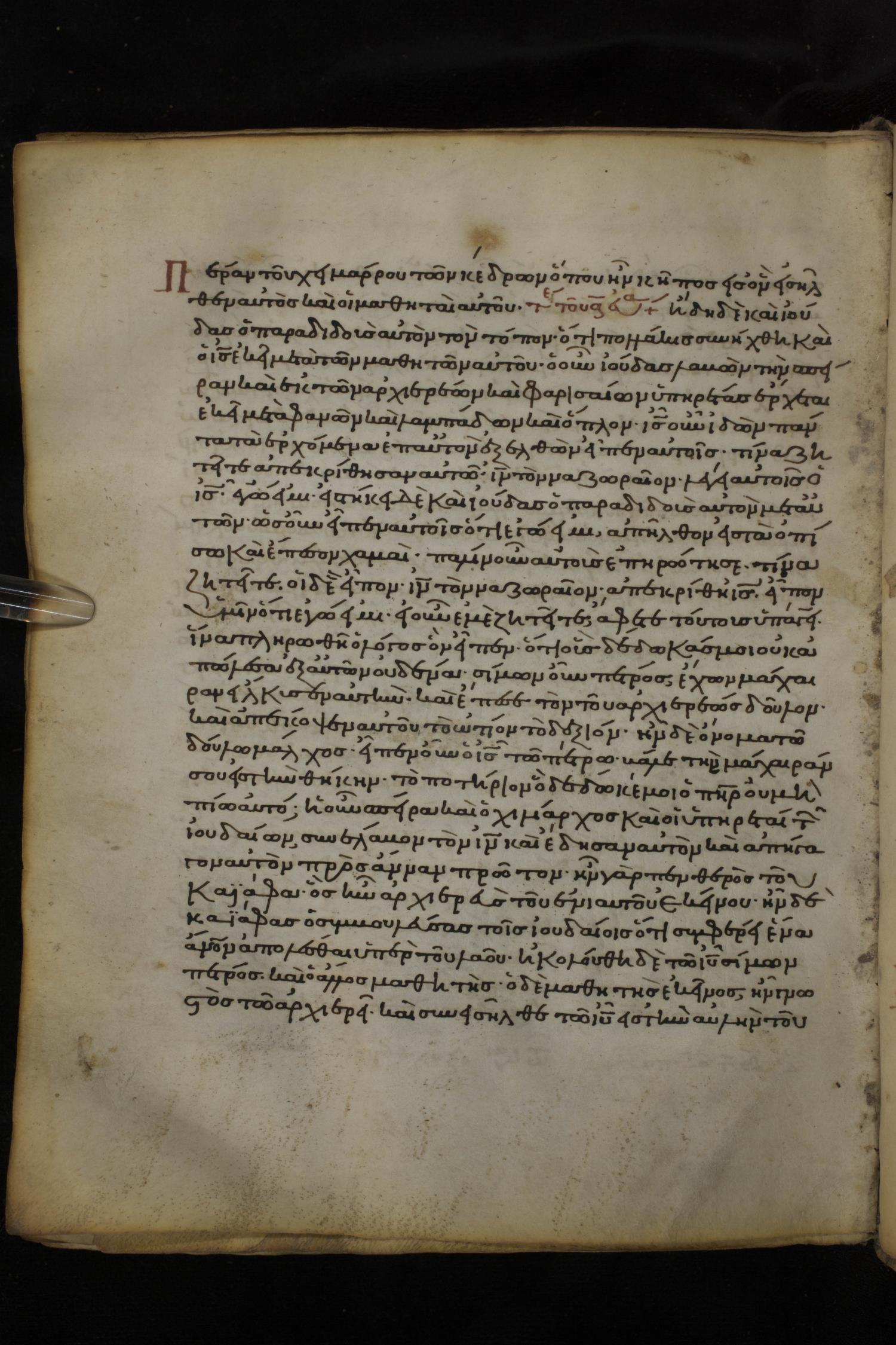Twelfth century minuscule of the Gospels on parchment; 150 leaves, 1 column, 27 lines per column. Images were taken at the National Library of Greece in Athens.