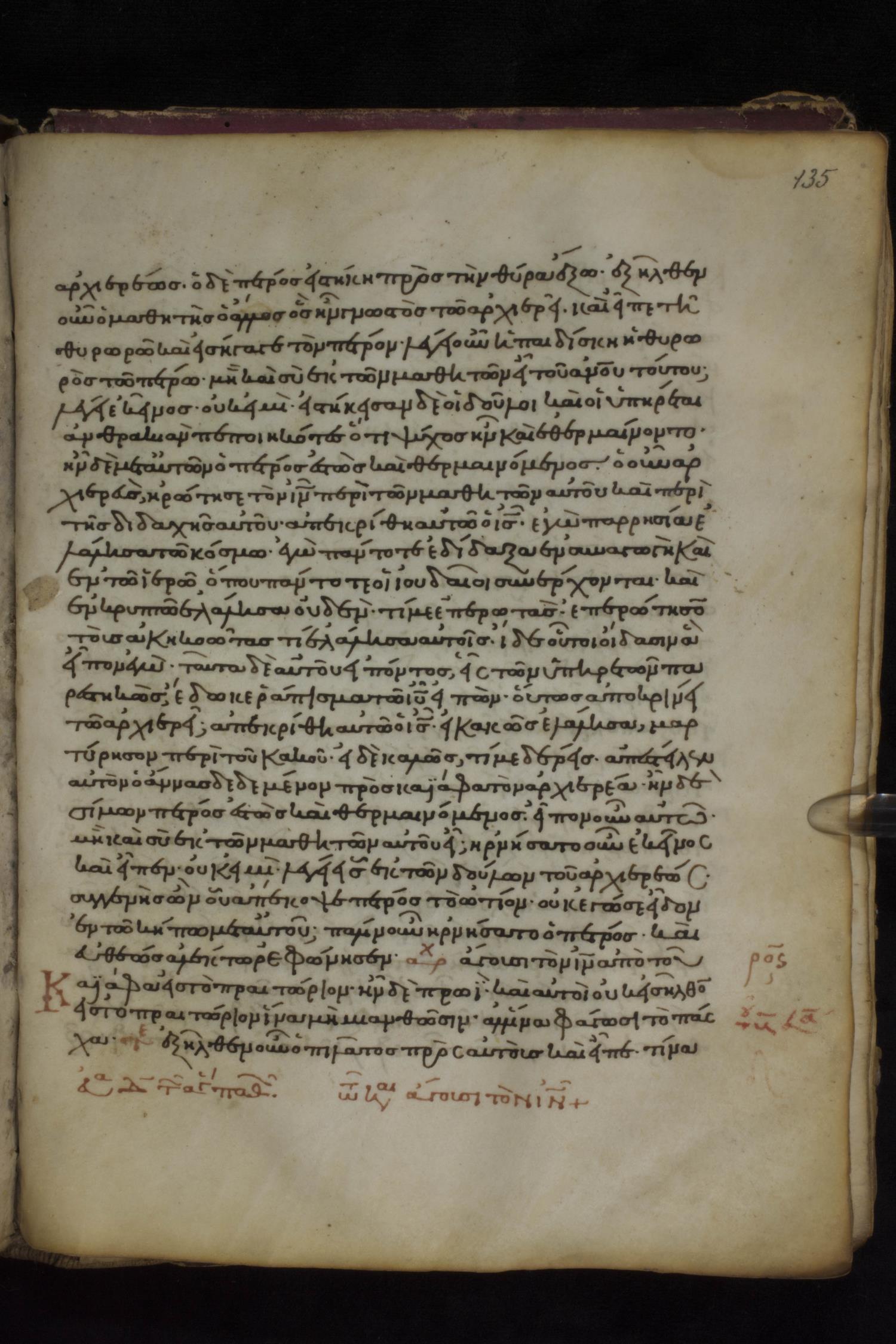 Twelfth century minuscule of the Gospels on parchment; 150 leaves, 1 column, 27 lines per column. Images were taken at the National Library of Greece in Athens.