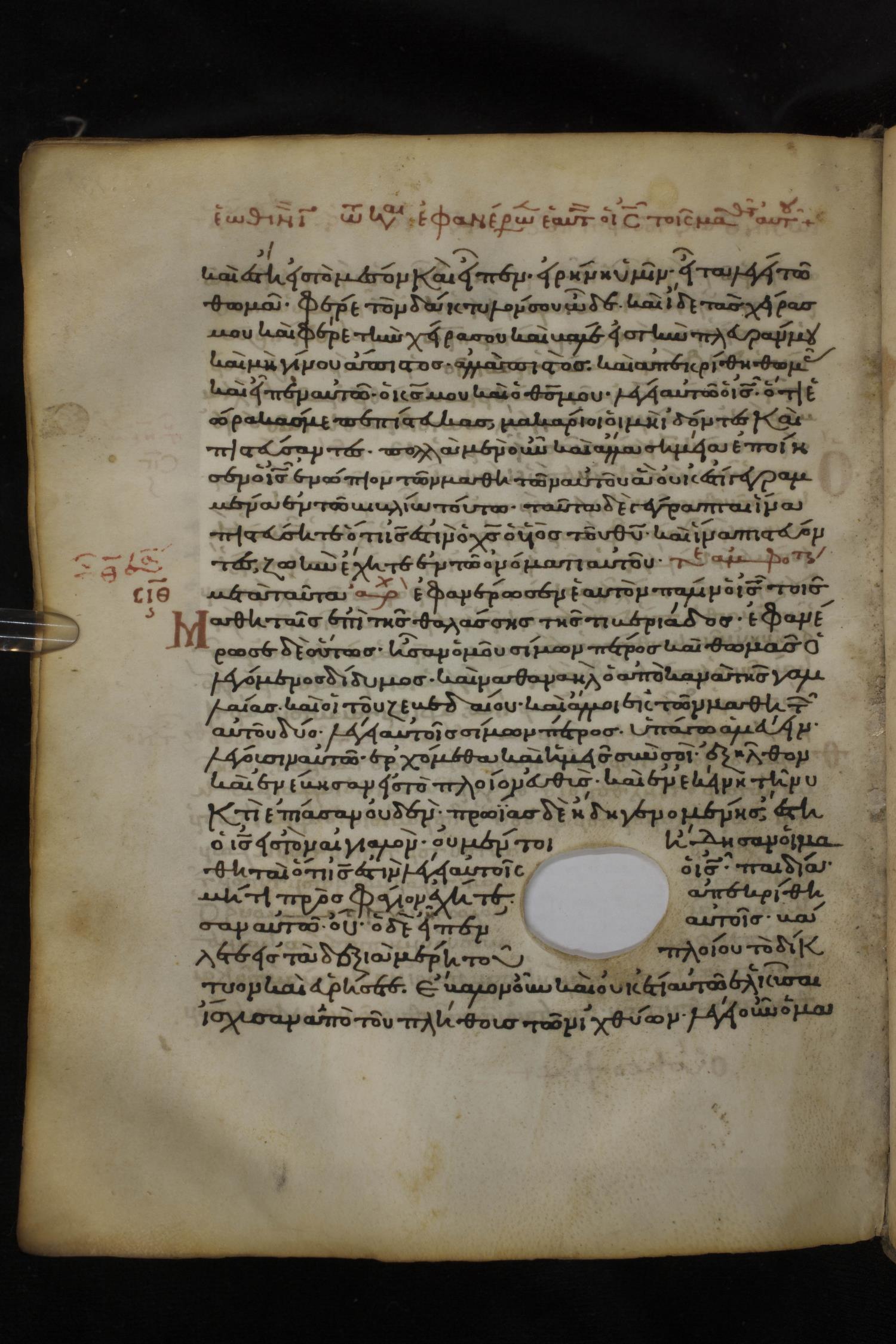 Twelfth century minuscule of the Gospels on parchment; 150 leaves, 1 column, 27 lines per column. Images were taken at the National Library of Greece in Athens.