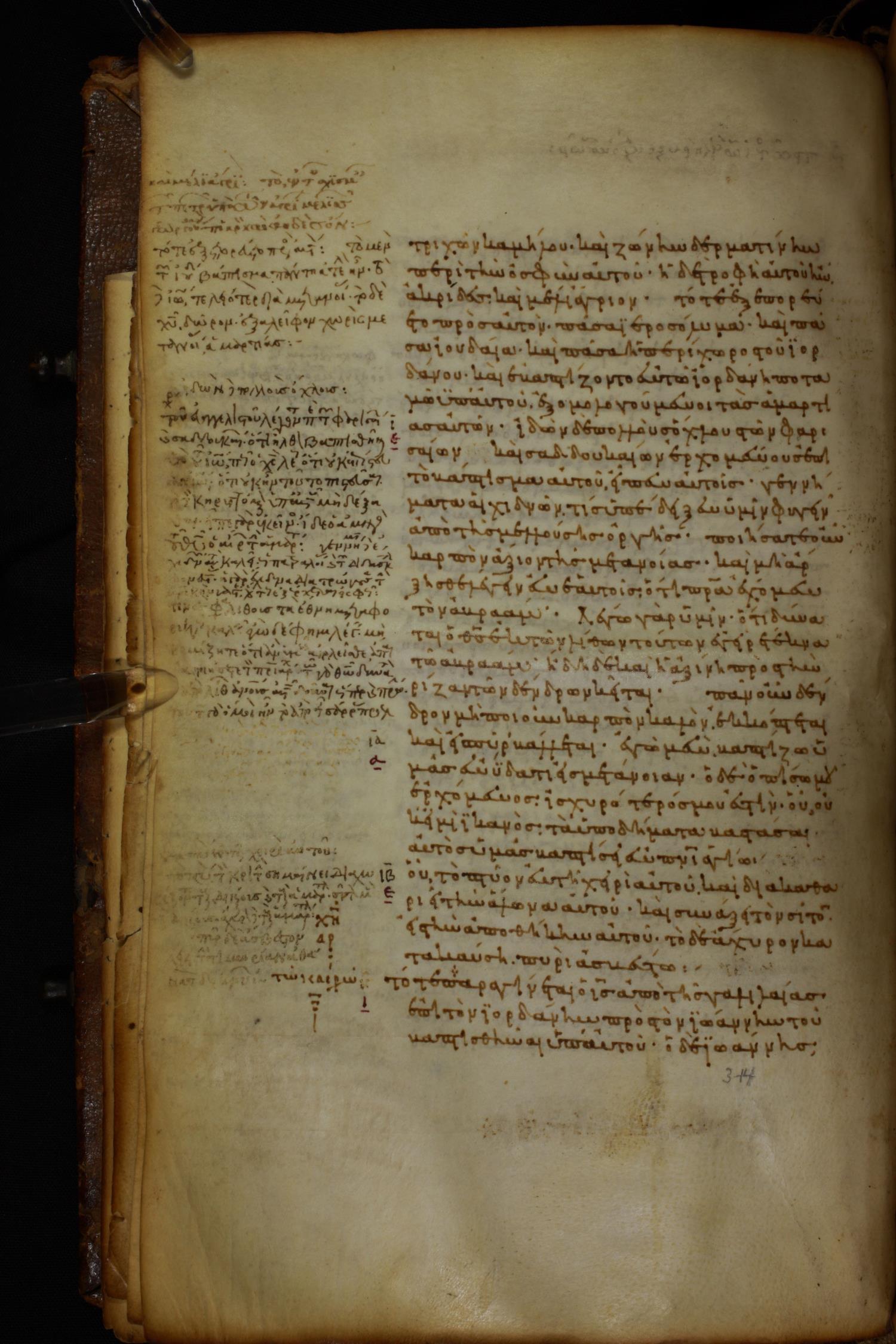 Ninth or tenth century minuscule of the Gospels, Apostolos, Paul, and Revelation (complete New Testament) with commentary on parchment; 337 leaves, single column, 29–33 lines per column.