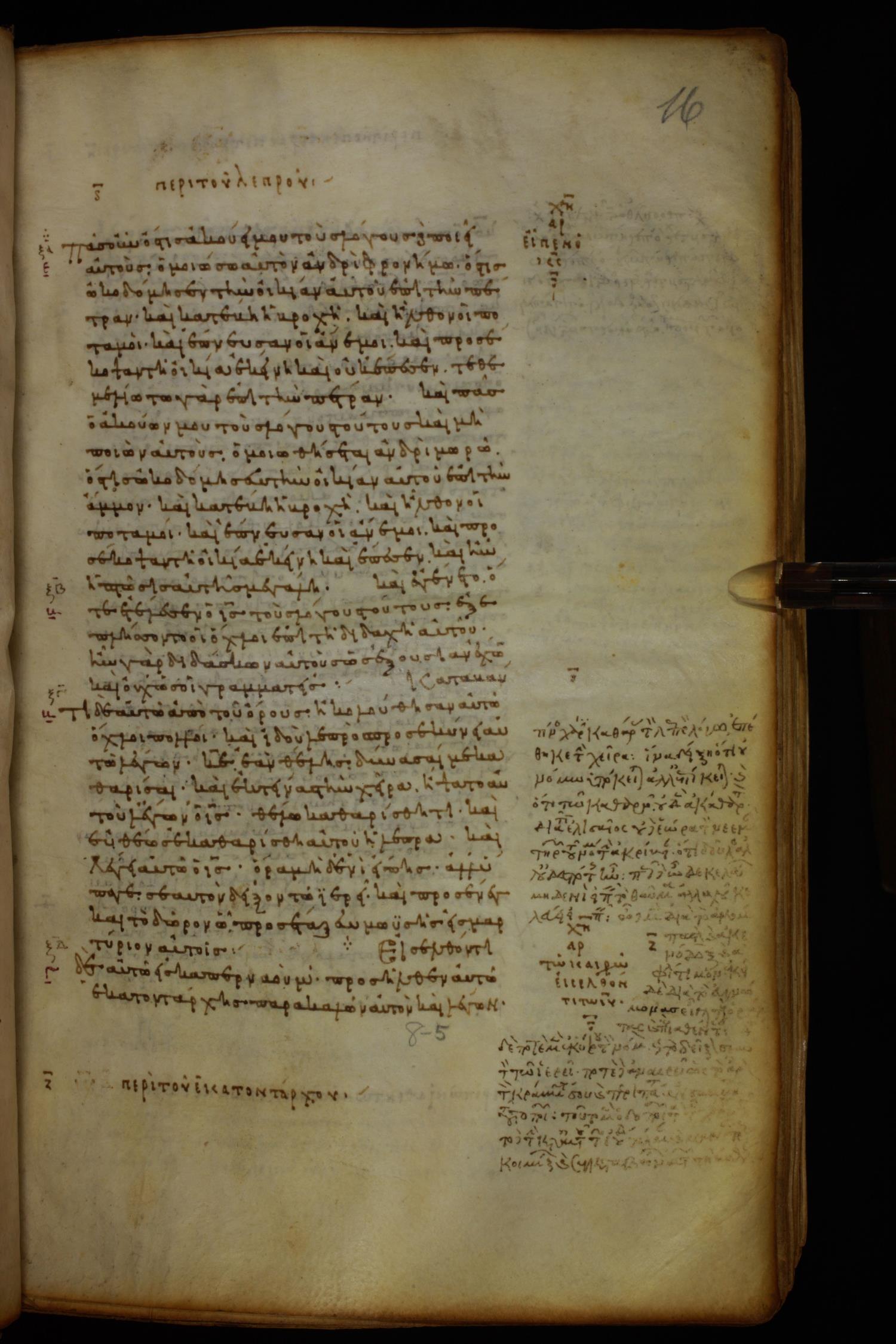 Ninth or tenth century minuscule of the Gospels, Apostolos, Paul, and Revelation (complete New Testament) with commentary on parchment; 337 leaves, single column, 29–33 lines per column.