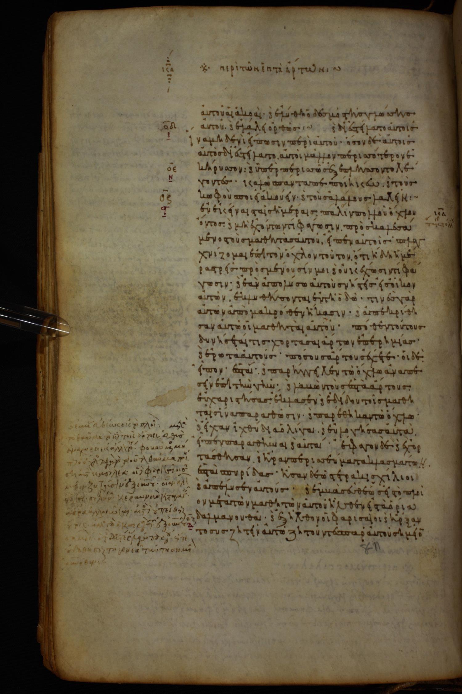 Ninth or tenth century minuscule of the Gospels, Apostolos, Paul, and Revelation (complete New Testament) with commentary on parchment; 337 leaves, single column, 29–33 lines per column.
