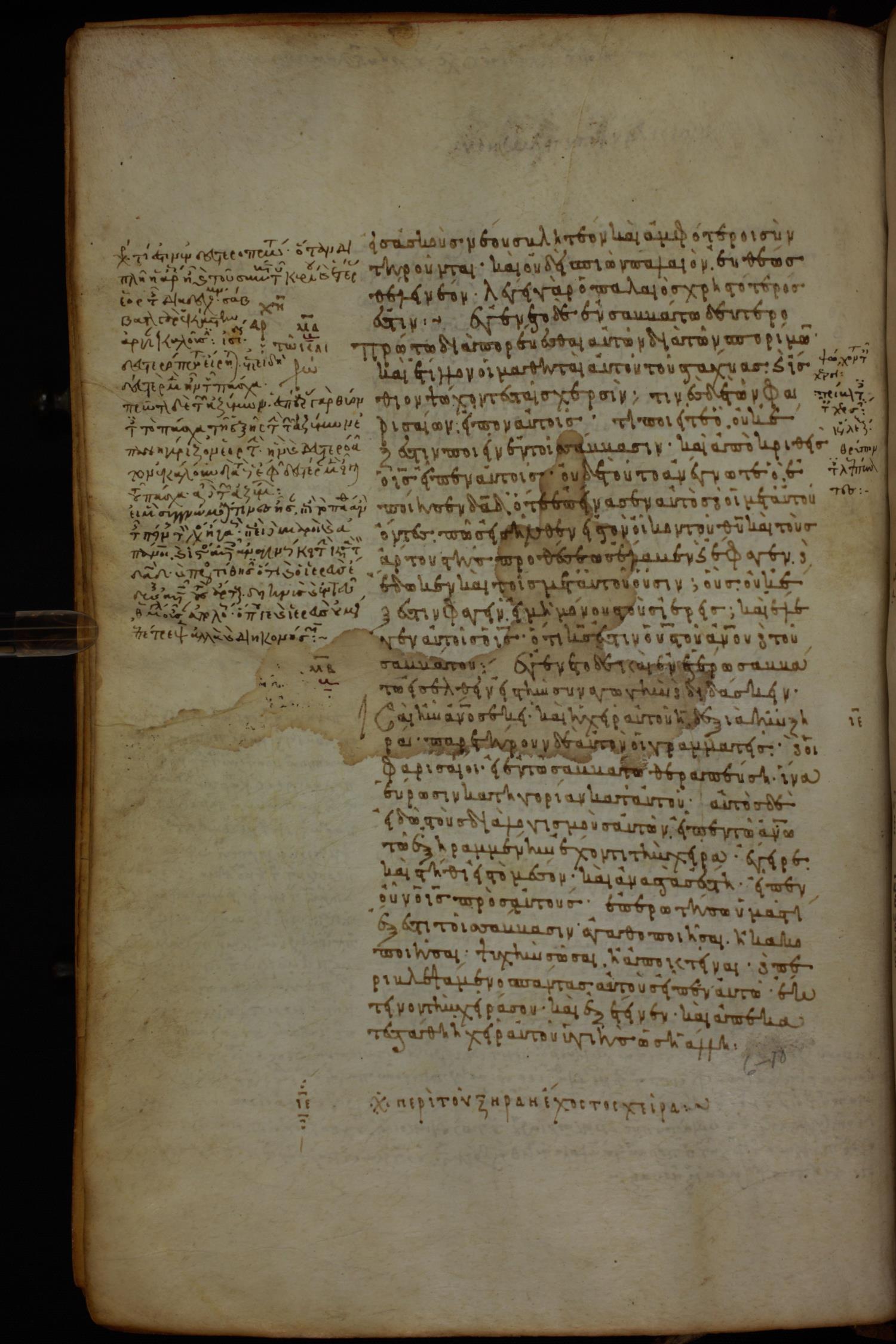 Ninth or tenth century minuscule of the Gospels, Apostolos, Paul, and Revelation (complete New Testament) with commentary on parchment; 337 leaves, single column, 29–33 lines per column.