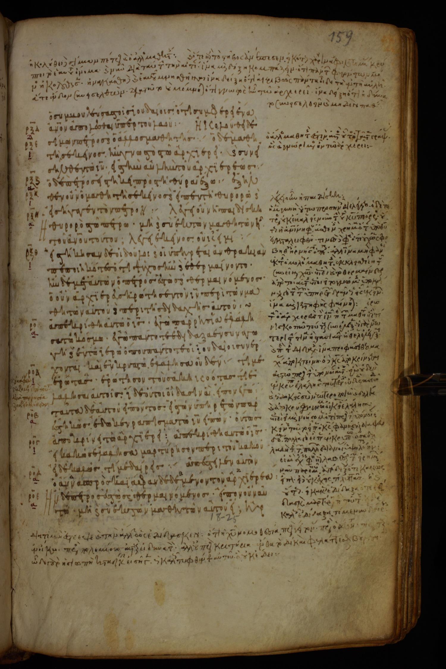 Ninth or tenth century minuscule of the Gospels, Apostolos, Paul, and Revelation (complete New Testament) with commentary on parchment; 337 leaves, single column, 29–33 lines per column.