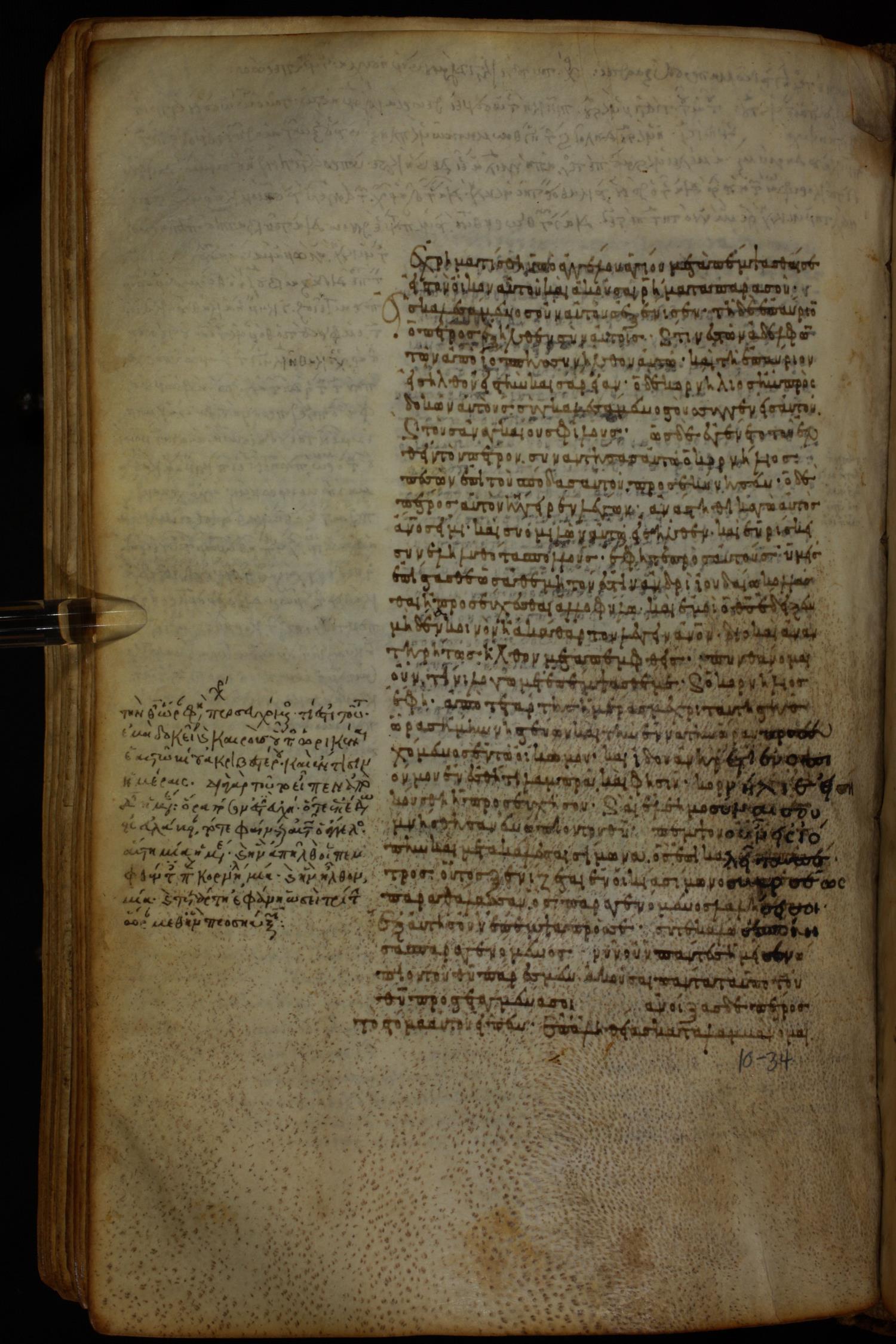 Ninth or tenth century minuscule of the Gospels, Apostolos, Paul, and Revelation (complete New Testament) with commentary on parchment; 337 leaves, single column, 29–33 lines per column.