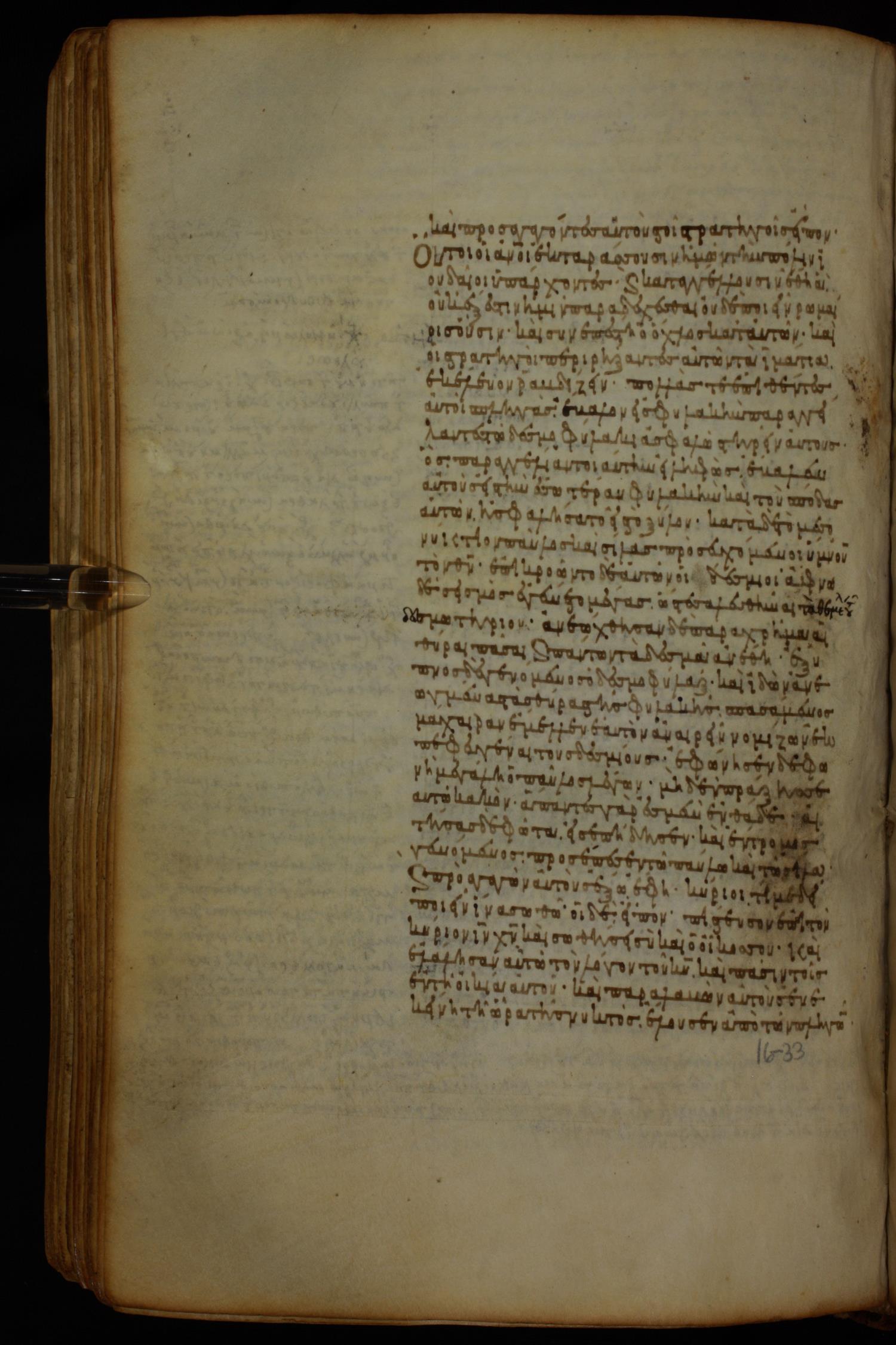 Ninth or tenth century minuscule of the Gospels, Apostolos, Paul, and Revelation (complete New Testament) with commentary on parchment; 337 leaves, single column, 29–33 lines per column.