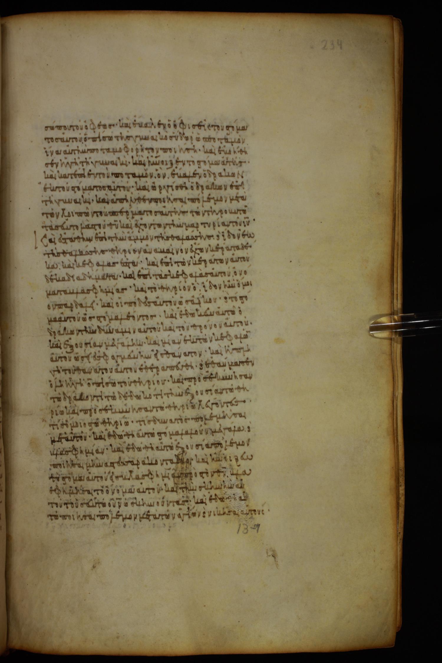 Ninth or tenth century minuscule of the Gospels, Apostolos, Paul, and Revelation (complete New Testament) with commentary on parchment; 337 leaves, single column, 29–33 lines per column.