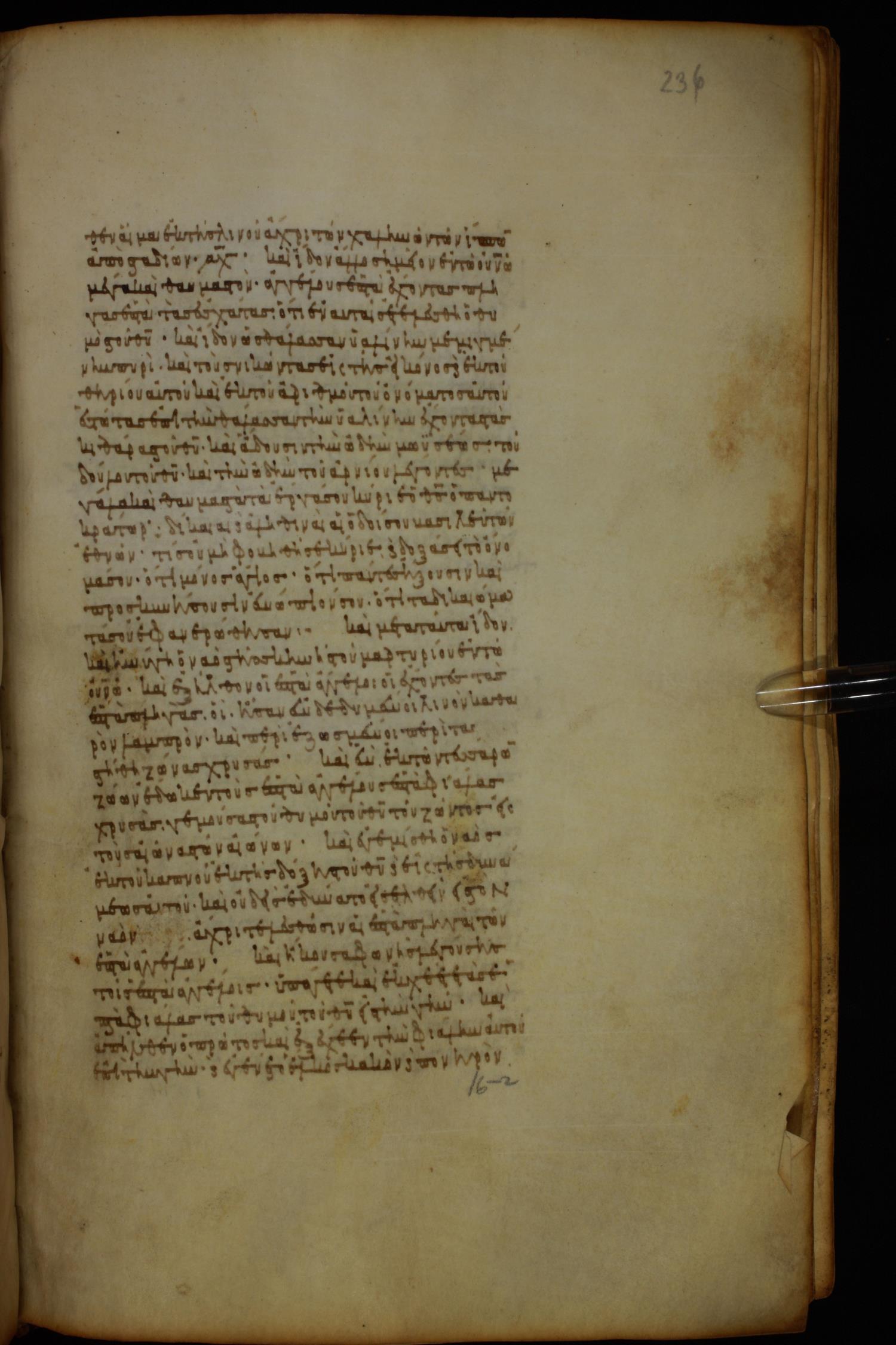 Ninth or tenth century minuscule of the Gospels, Apostolos, Paul, and Revelation (complete New Testament) with commentary on parchment; 337 leaves, single column, 29–33 lines per column.