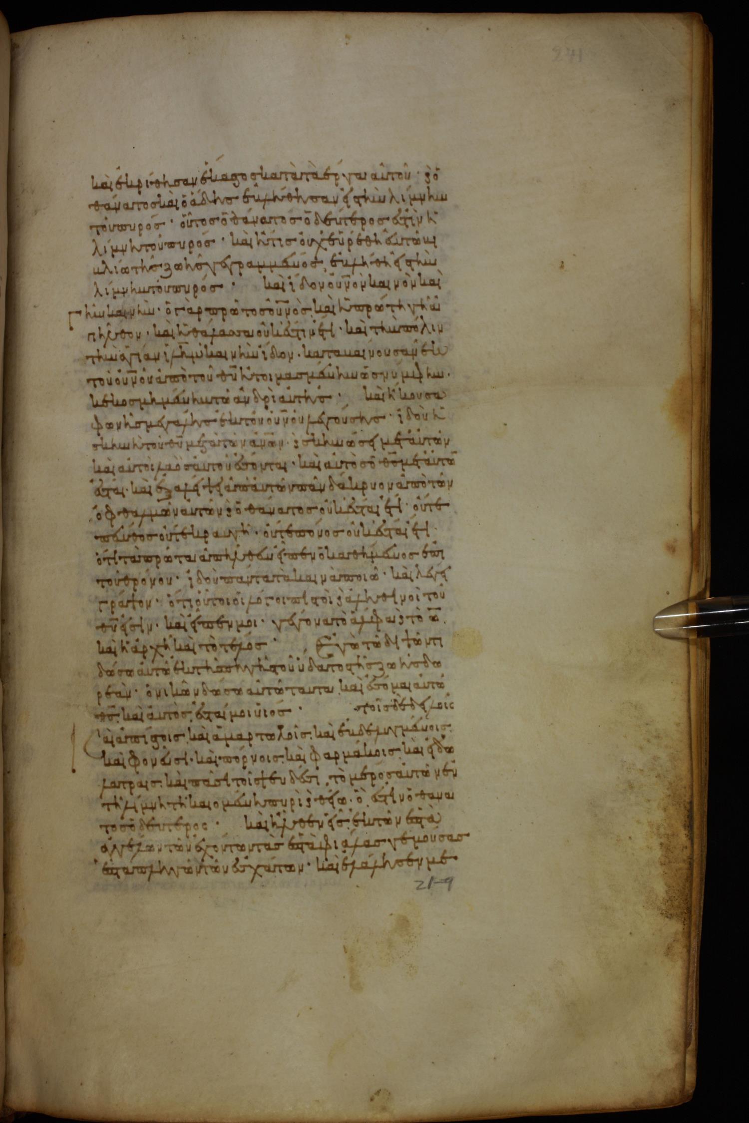 Ninth or tenth century minuscule of the Gospels, Apostolos, Paul, and Revelation (complete New Testament) with commentary on parchment; 337 leaves, single column, 29–33 lines per column.