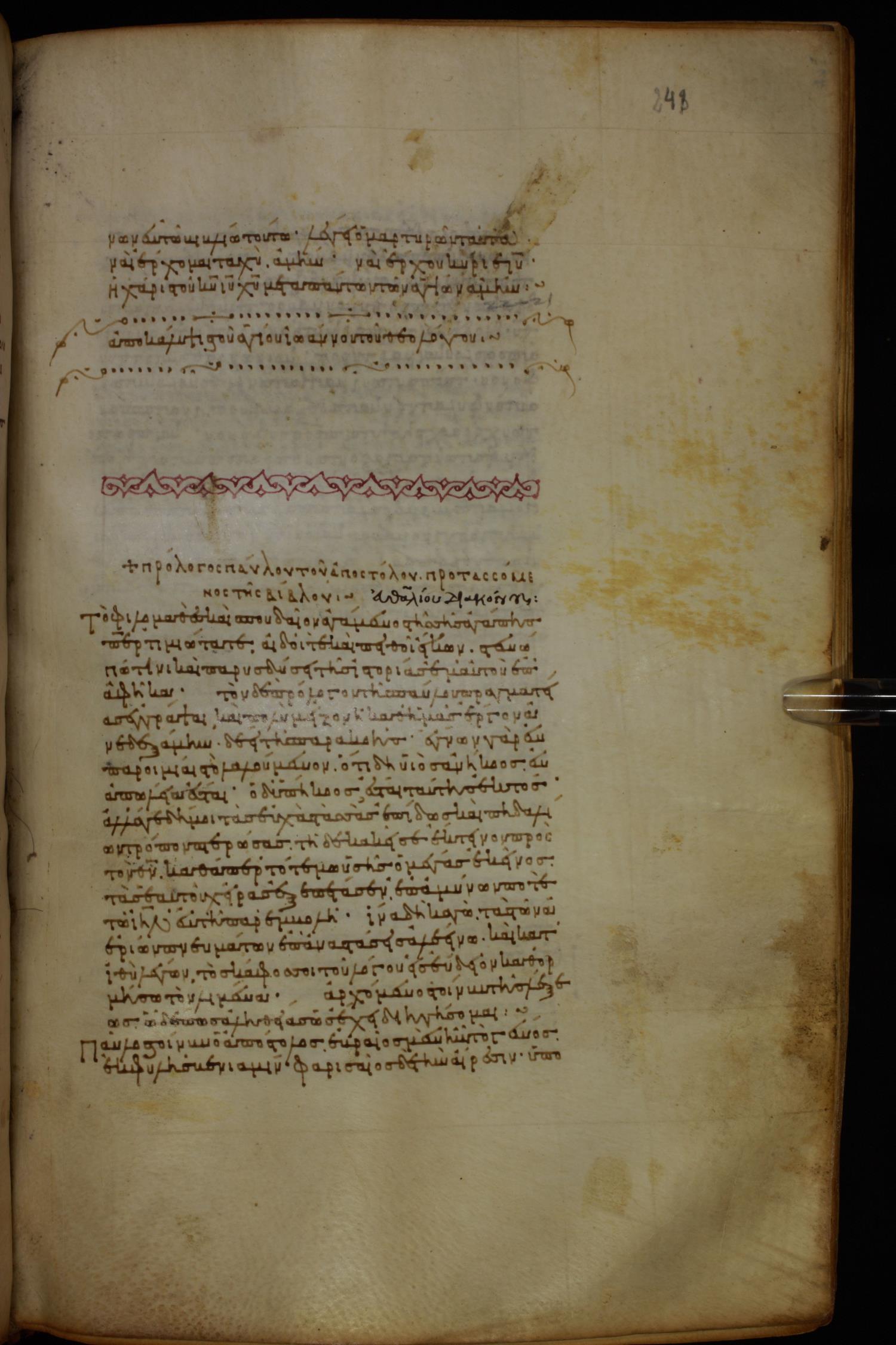 Ninth or tenth century minuscule of the Gospels, Apostolos, Paul, and Revelation (complete New Testament) with commentary on parchment; 337 leaves, single column, 29–33 lines per column.