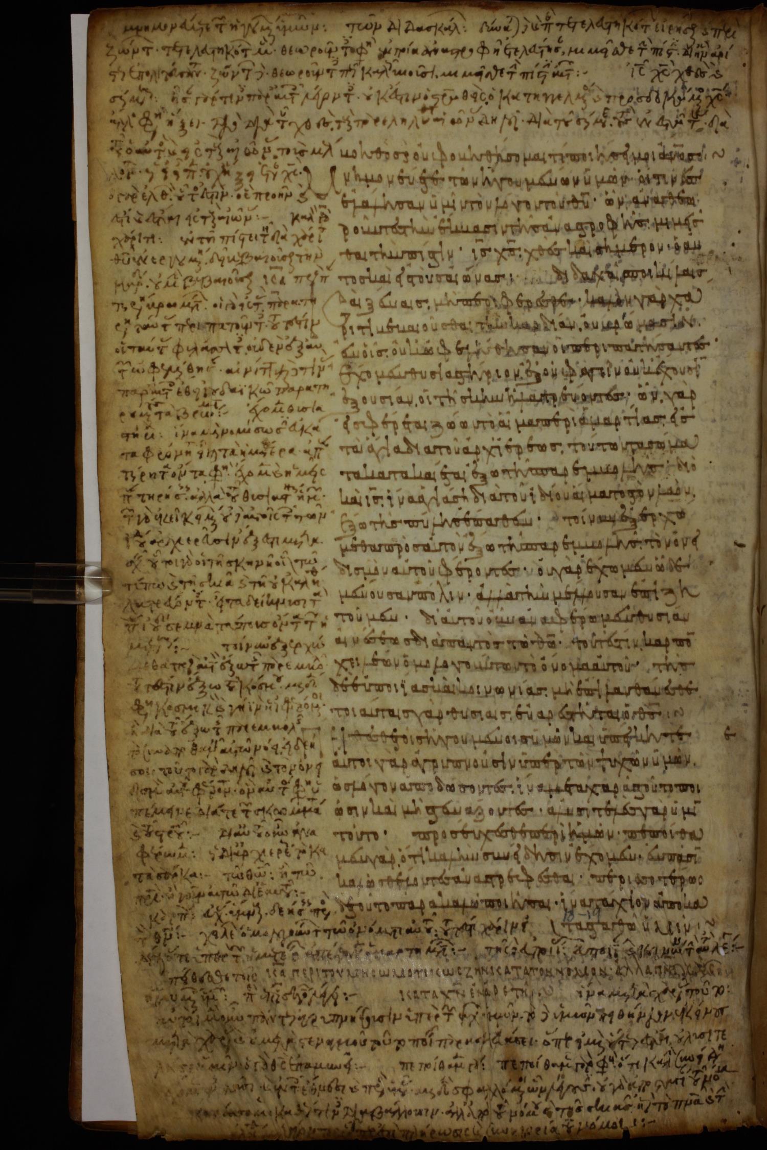 Ninth or tenth century minuscule of the Gospels, Apostolos, Paul, and Revelation (complete New Testament) with commentary on parchment; 337 leaves, single column, 29–33 lines per column.