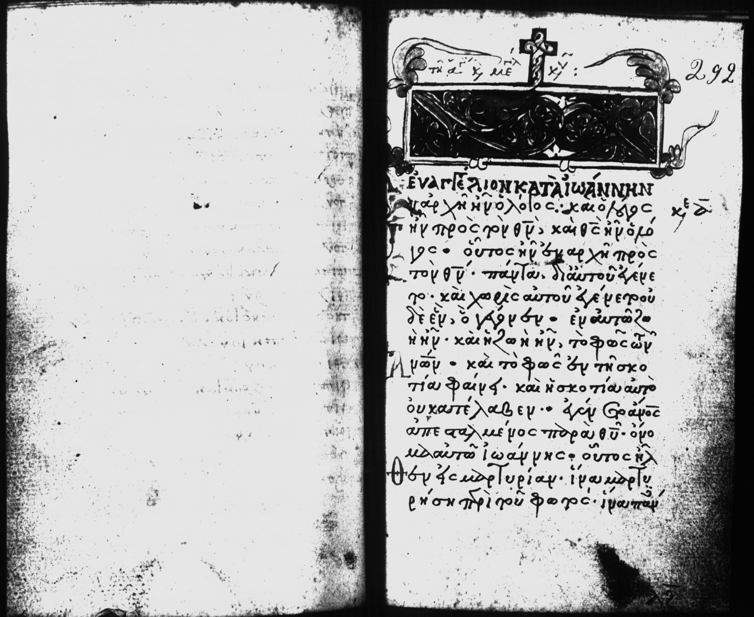 Fifteenth century manuscript (dated to 1445) of the Gospels on paper; 424 leaves, 1 column, 19 lines per column. Digital images are from microfilm.