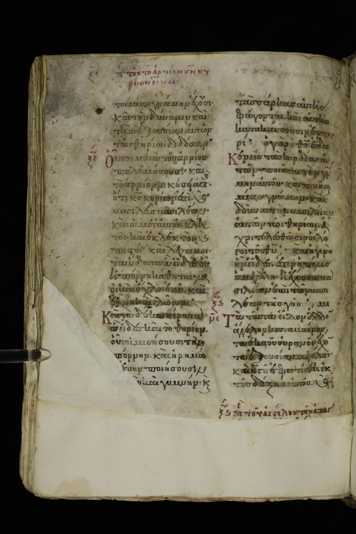 Tenth century minuscule of the Apostolos, Paul, and Revelation on parchment; 312 leaves, 2 columns, 22 lines per column. Images were taken at the National Library of Greece in Athens.