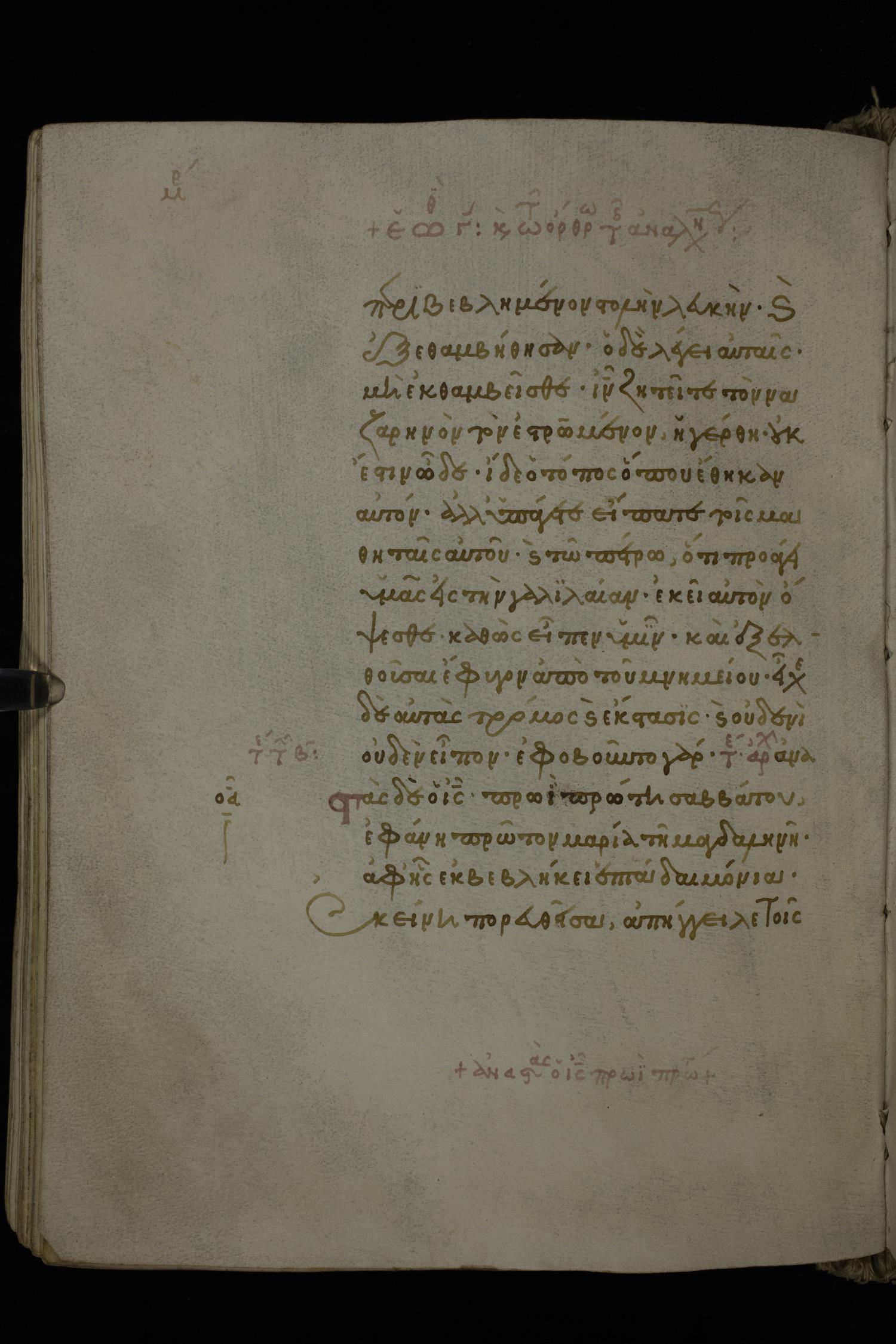 Fifteenth century minuscule (dated to 1418) of the Gospels on parchment; 344 leaves, 1 column, 17 lines per column. Images were taken at the National Library of Greece in Athens.