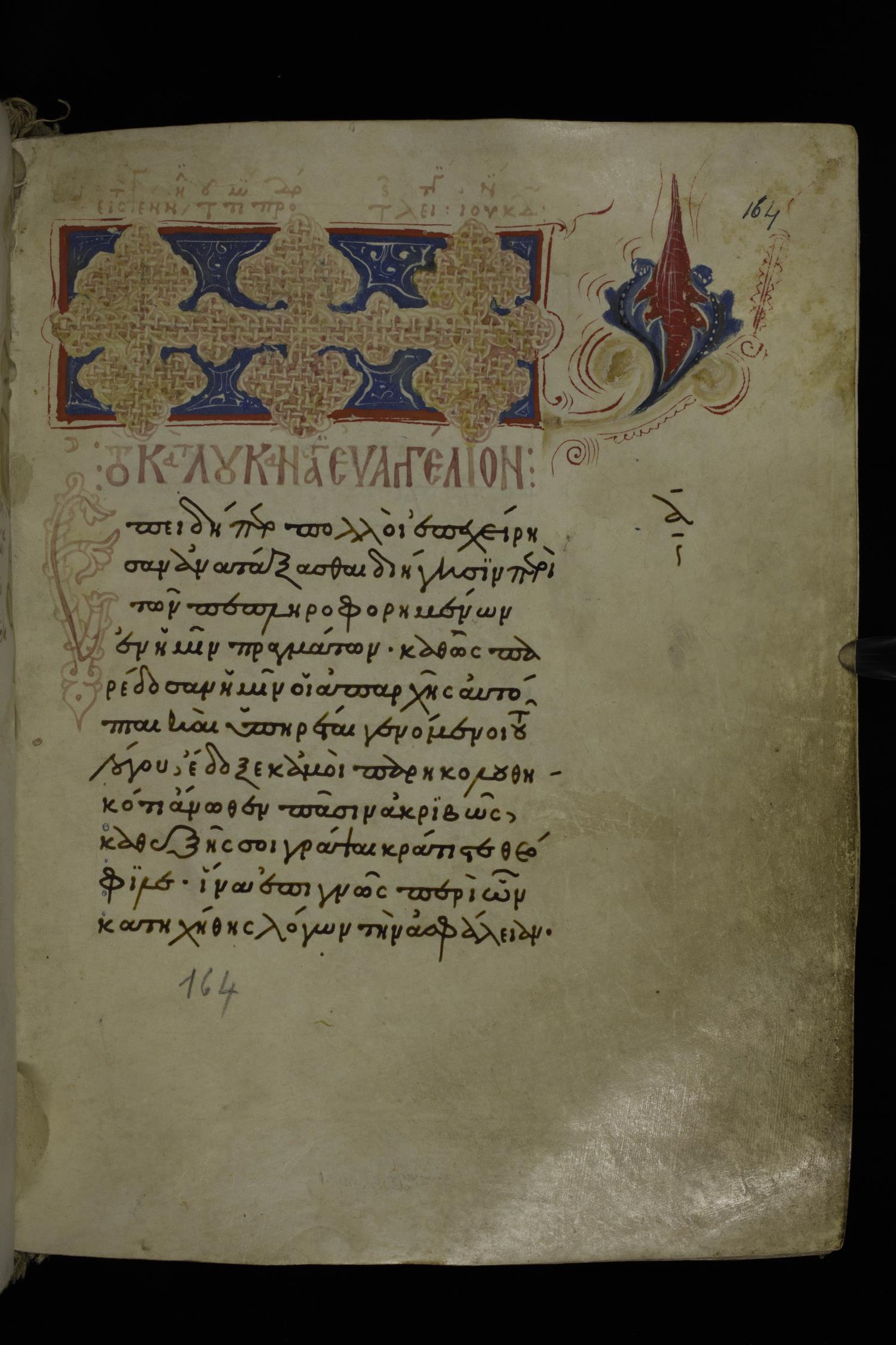 Fifteenth century minuscule (dated to 1418) of the Gospels on parchment; 344 leaves, 1 column, 17 lines per column. Images were taken at the National Library of Greece in Athens.