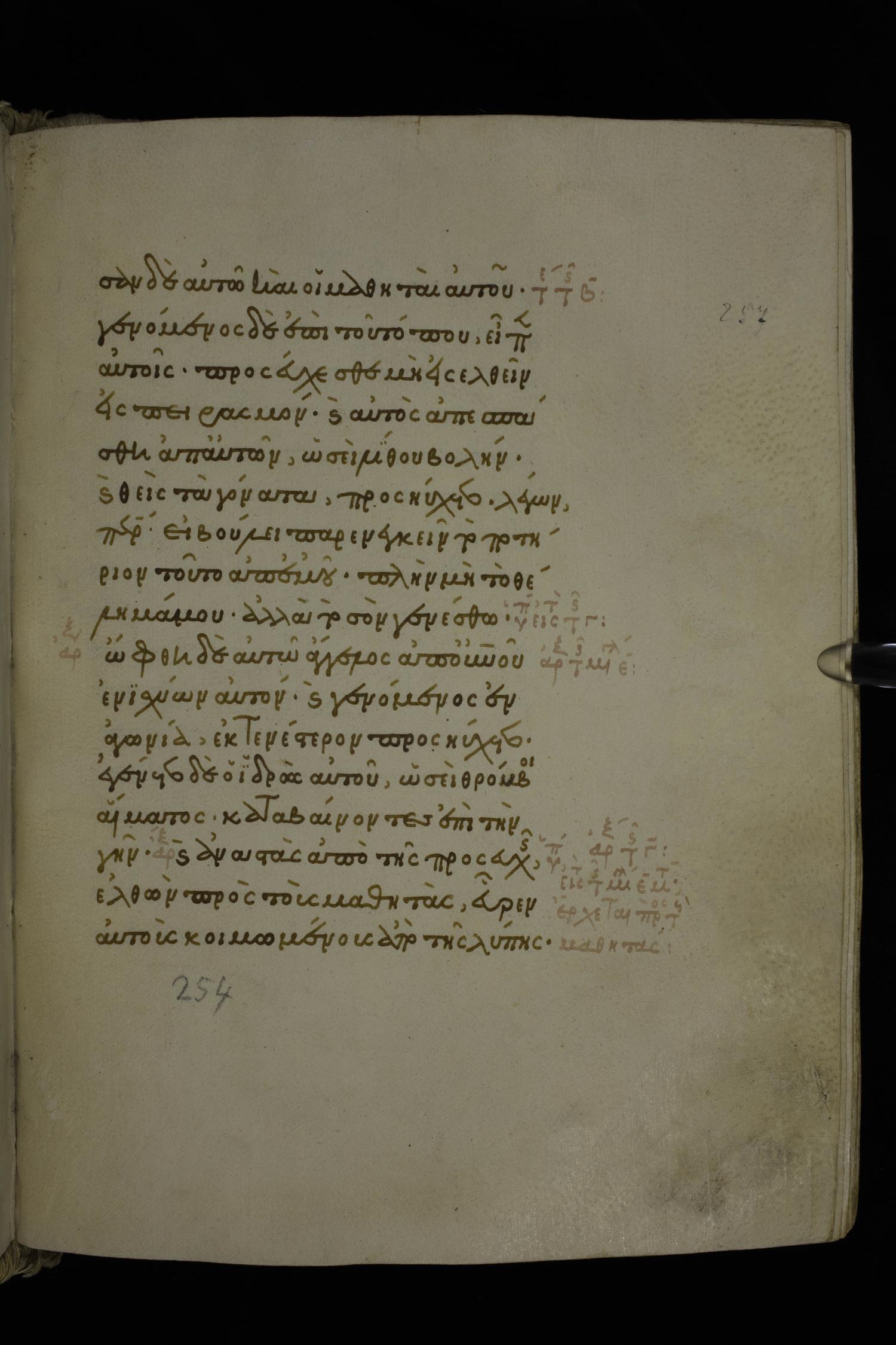 Fifteenth century minuscule (dated to 1418) of the Gospels on parchment; 344 leaves, 1 column, 17 lines per column. Images were taken at the National Library of Greece in Athens.