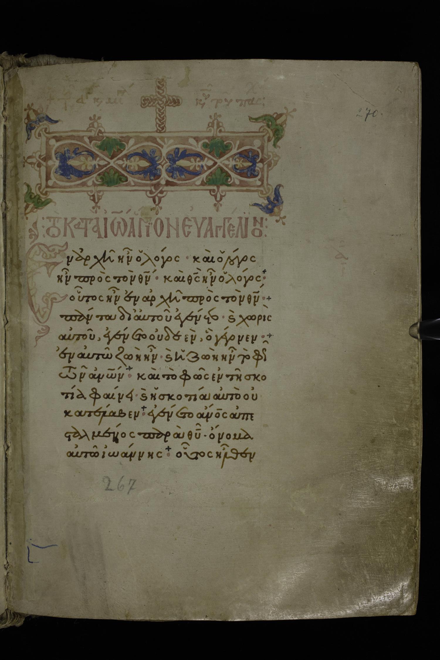 Fifteenth century minuscule (dated to 1418) of the Gospels on parchment; 344 leaves, 1 column, 17 lines per column. Images were taken at the National Library of Greece in Athens.