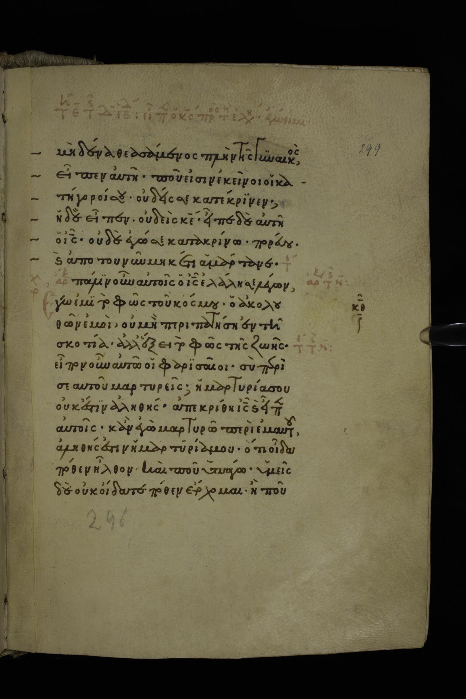 Fifteenth century minuscule (dated to 1418) of the Gospels on parchment; 344 leaves, 1 column, 17 lines per column. Images were taken at the National Library of Greece in Athens.