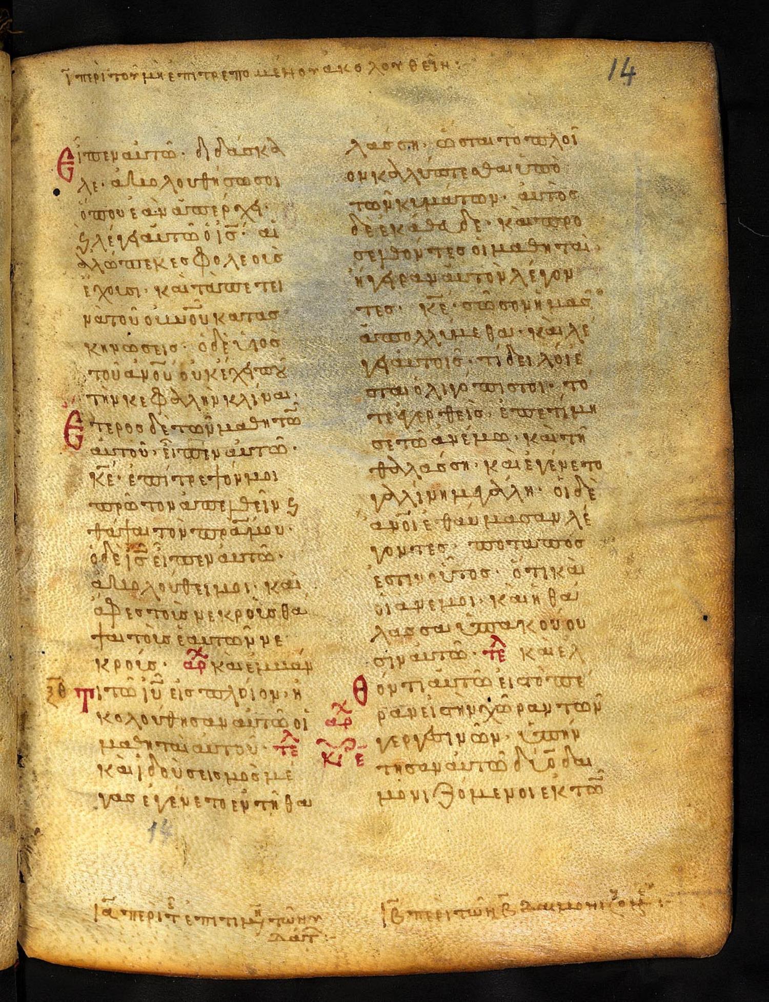 Thirteenth-century (c. 1200) manuscript of the Gospels on parchment; 197 leaves, 2 columns, 25 lines per column. These images are made available by the holding institution according to Creative Commons licensing. For recent digital images, visit Manuscriptorium online.