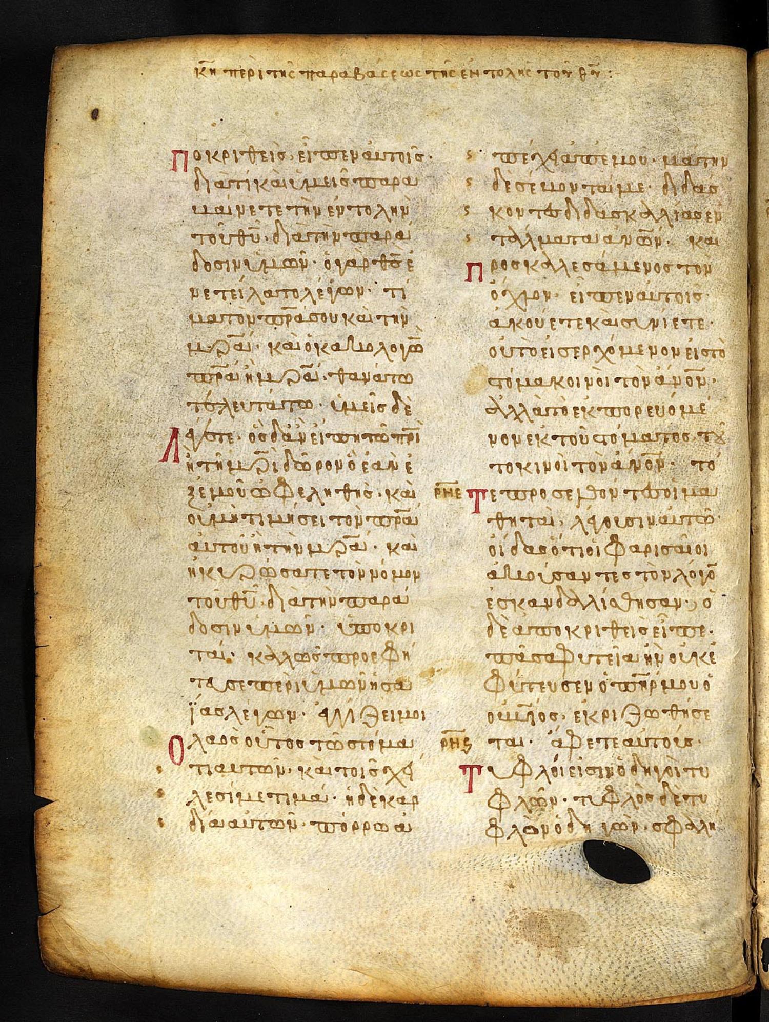 οὐ τὸ εἰσερχόμενον εἰς τὸ στόμα κοινοῖ τὸν ἄνθρωπον, ἀλλὰ τὸ ἐκπορευόμενον ἐκ τοῦ στόματος τοῦτο κοινοῖ τὸν ἄνθρωπον.