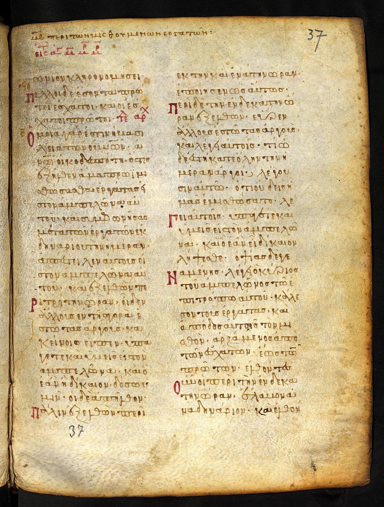 Thirteenth-century (c. 1200) manuscript of the Gospels on parchment; 197 leaves, 2 columns, 25 lines per column. These images are made available by the holding institution according to Creative Commons licensing. For recent digital images, visit Manuscriptorium online.