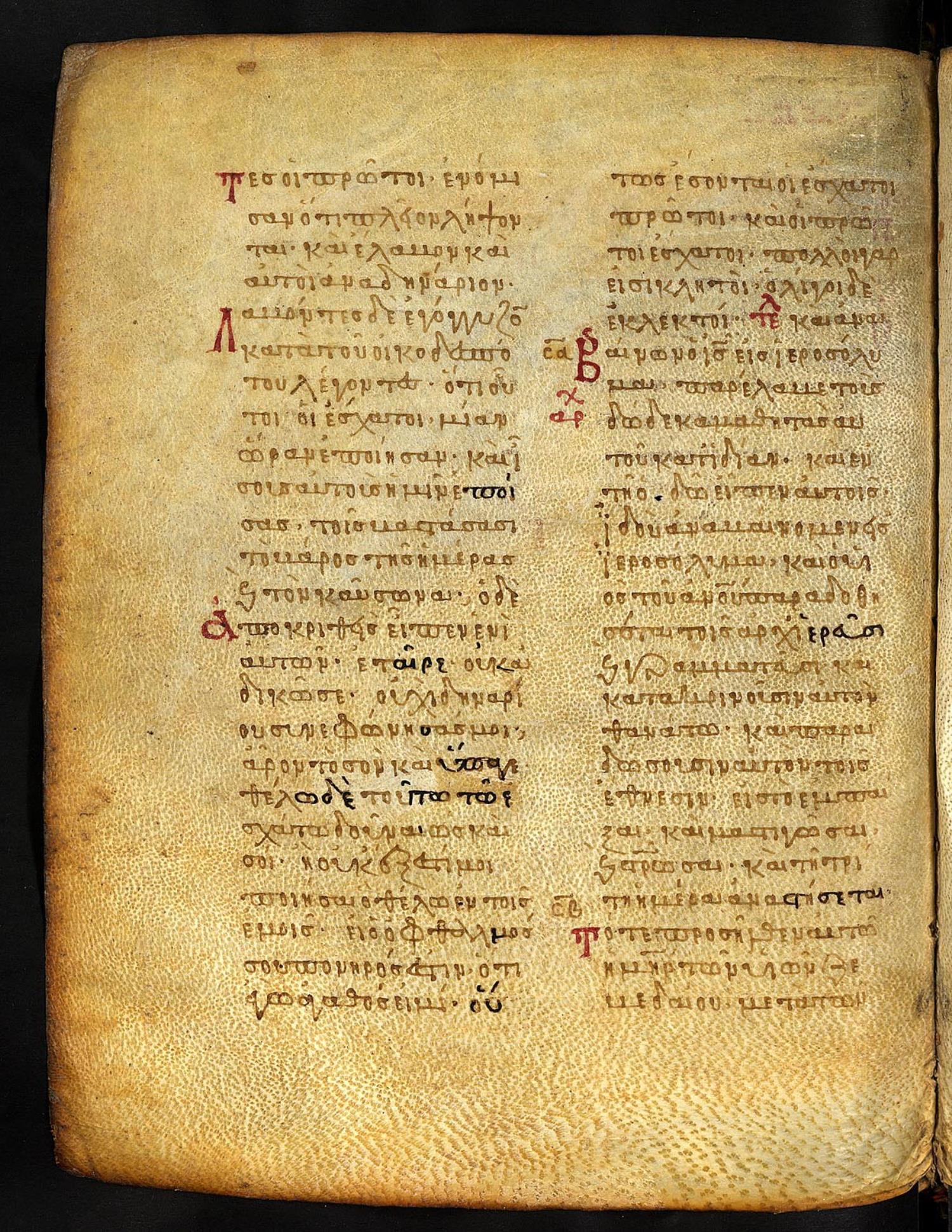 Thirteenth-century (c. 1200) manuscript of the Gospels on parchment; 197 leaves, 2 columns, 25 lines per column. These images are made available by the holding institution according to Creative Commons licensing. For recent digital images, visit Manuscriptorium online.