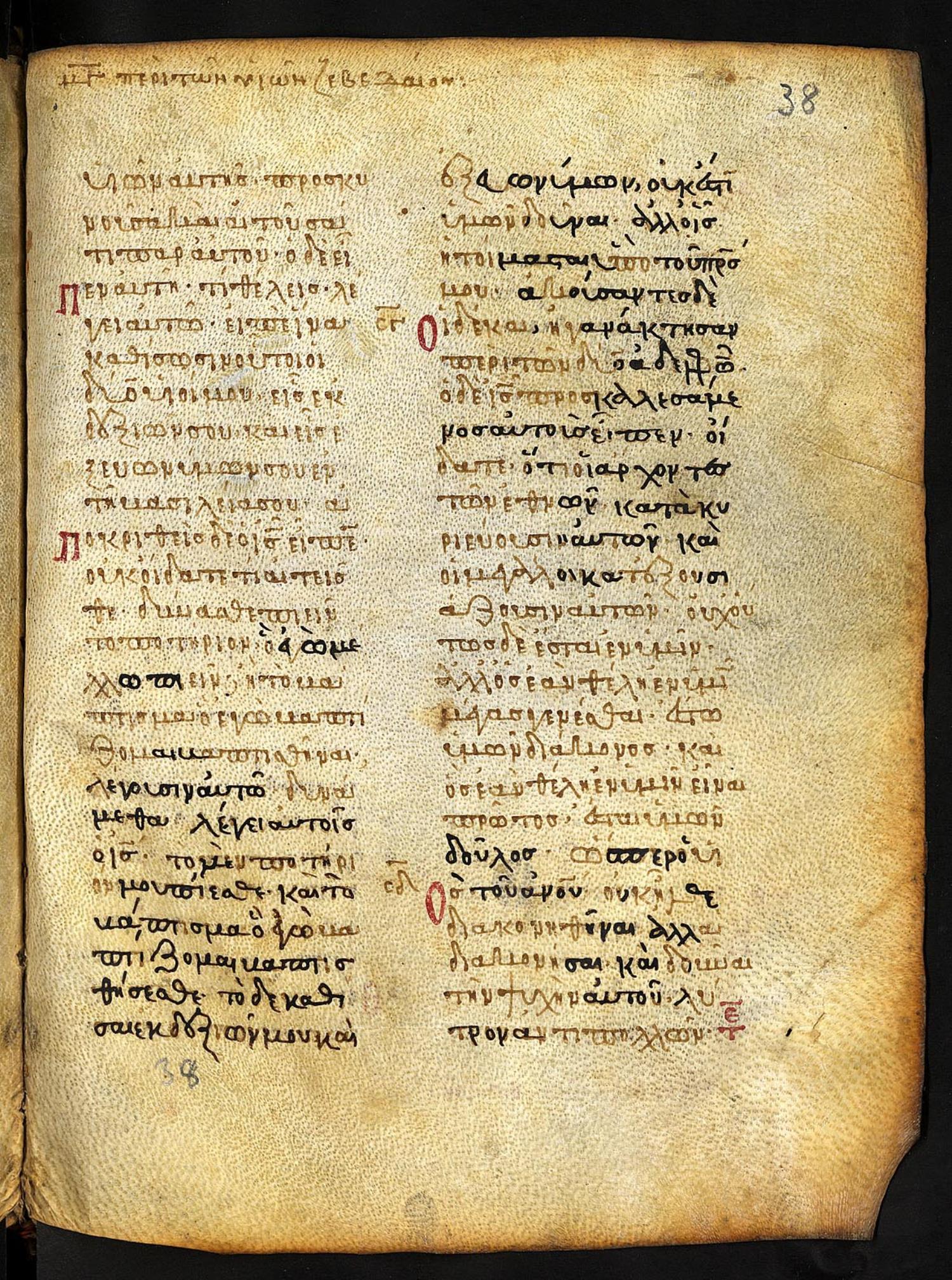 Thirteenth-century (c. 1200) manuscript of the Gospels on parchment; 197 leaves, 2 columns, 25 lines per column. These images are made available by the holding institution according to Creative Commons licensing. For recent digital images, visit Manuscriptorium online.