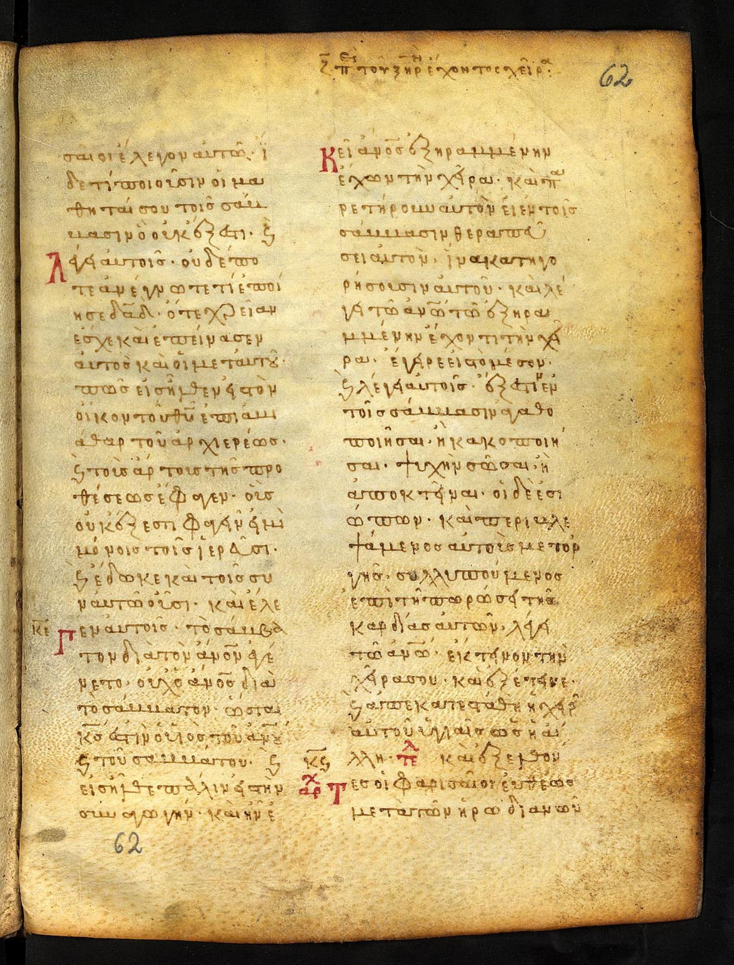 Thirteenth-century (c. 1200) manuscript of the Gospels on parchment; 197 leaves, 2 columns, 25 lines per column. These images are made available by the holding institution according to Creative Commons licensing. For recent digital images, visit Manuscriptorium online.