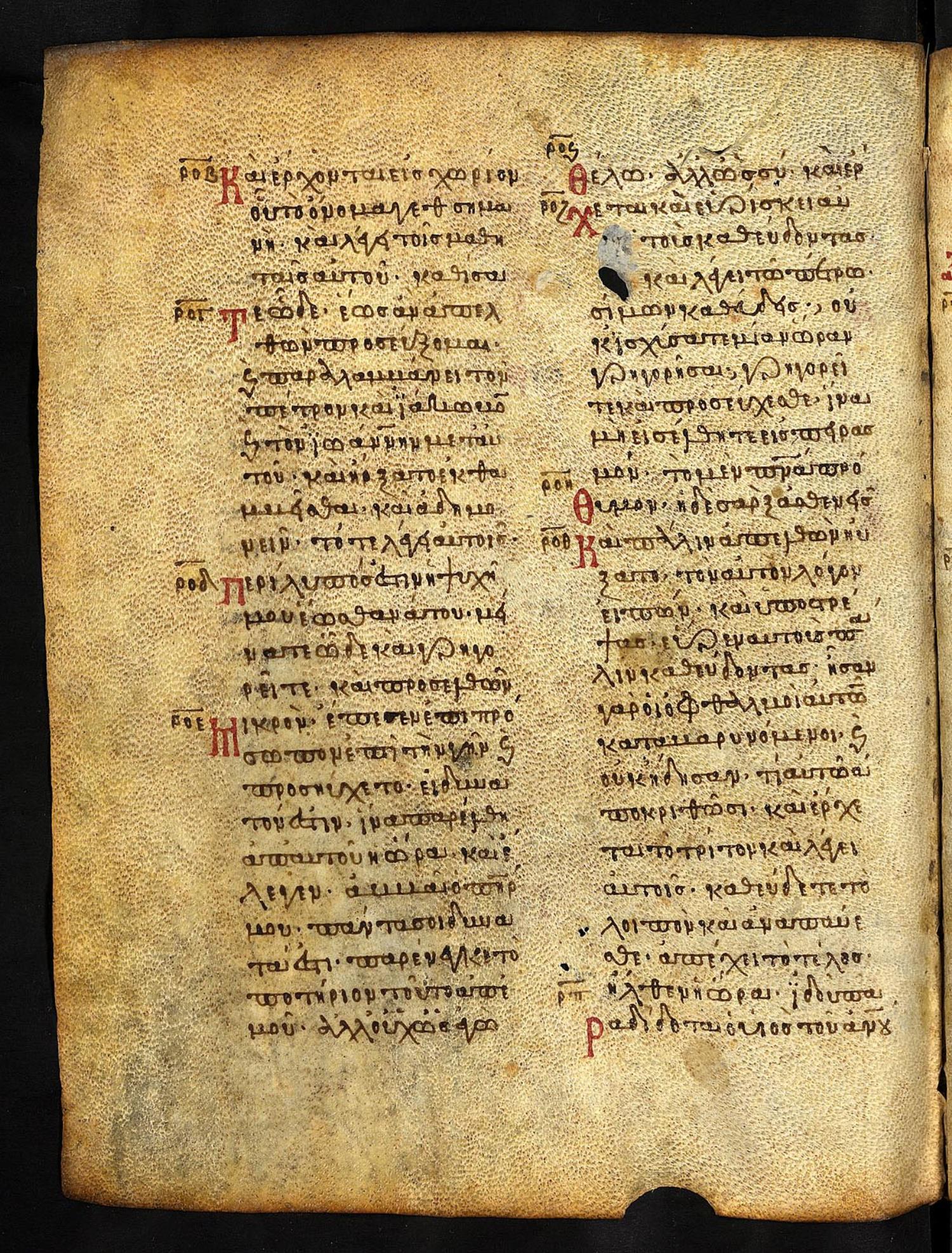 Thirteenth-century (c. 1200) manuscript of the Gospels on parchment; 197 leaves, 2 columns, 25 lines per column. These images are made available by the holding institution according to Creative Commons licensing. For recent digital images, visit Manuscriptorium online.