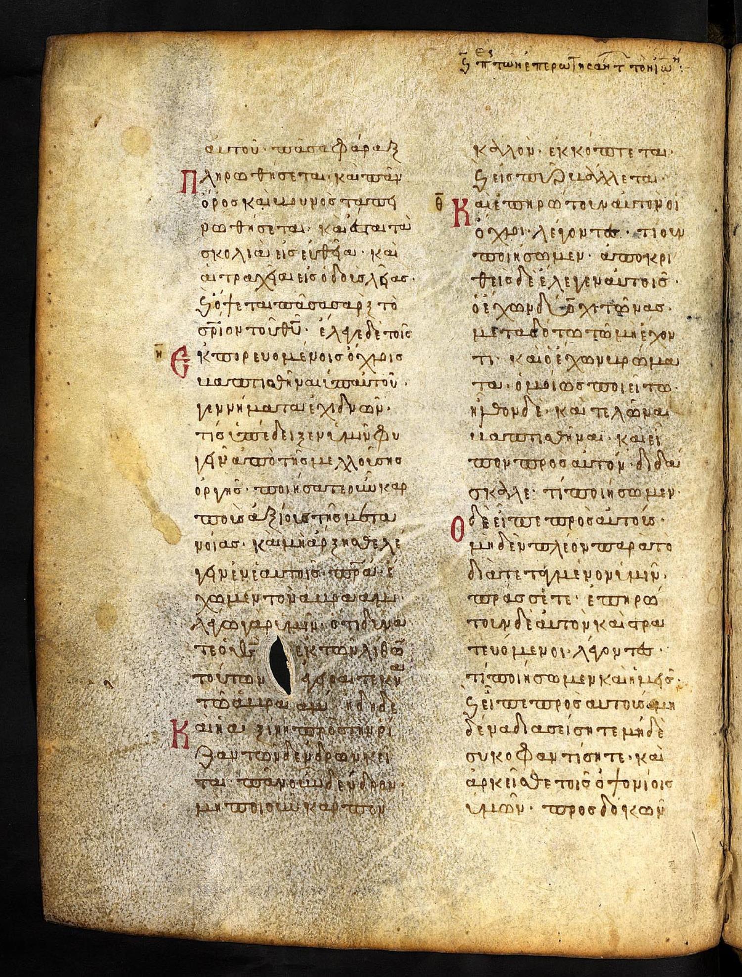 Thirteenth-century (c. 1200) manuscript of the Gospels on parchment; 197 leaves, 2 columns, 25 lines per column. These images are made available by the holding institution according to Creative Commons licensing. For recent digital images, visit Manuscriptorium online.