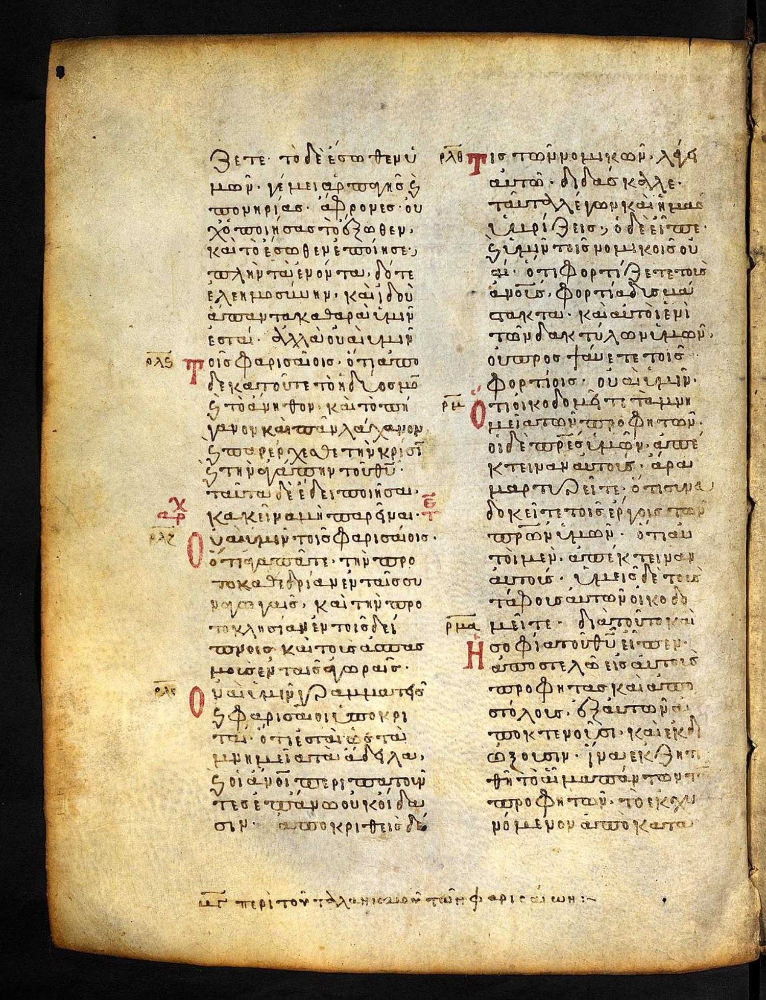 οὐαὶ ὑμῖν τοῖς Φαρισαίοις, ὅτι ἀγαπᾶτε τὴν πρωτοκαθεδρίαν ἐν ταῖς συναγωγαῖς καὶ τοὺς ἀσπασμοὺς ἐν ταῖς ἀγοραῖς.