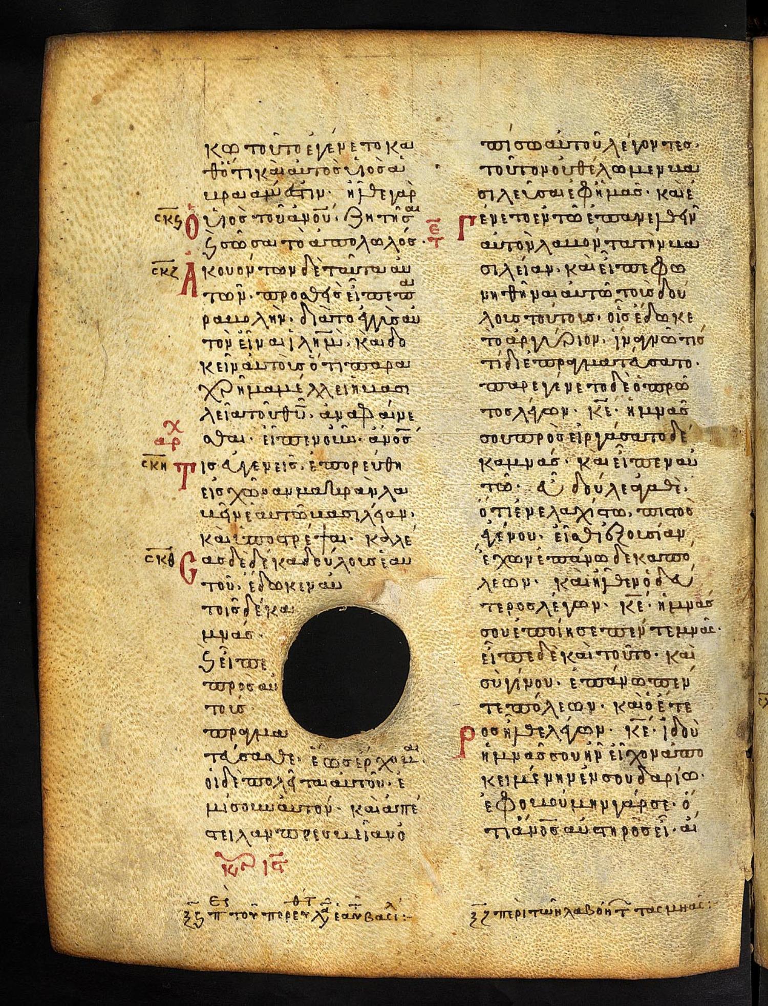 Thirteenth-century (c. 1200) manuscript of the Gospels on parchment; 197 leaves, 2 columns, 25 lines per column. These images are made available by the holding institution according to Creative Commons licensing. For recent digital images, visit Manuscriptorium online.