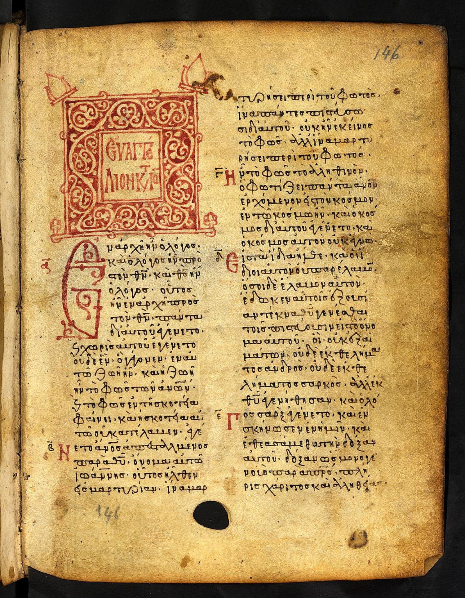 Thirteenth-century (c. 1200) manuscript of the Gospels on parchment; 197 leaves, 2 columns, 25 lines per column. These images are made available by the holding institution according to Creative Commons licensing. For recent digital images, visit Manuscriptorium online.