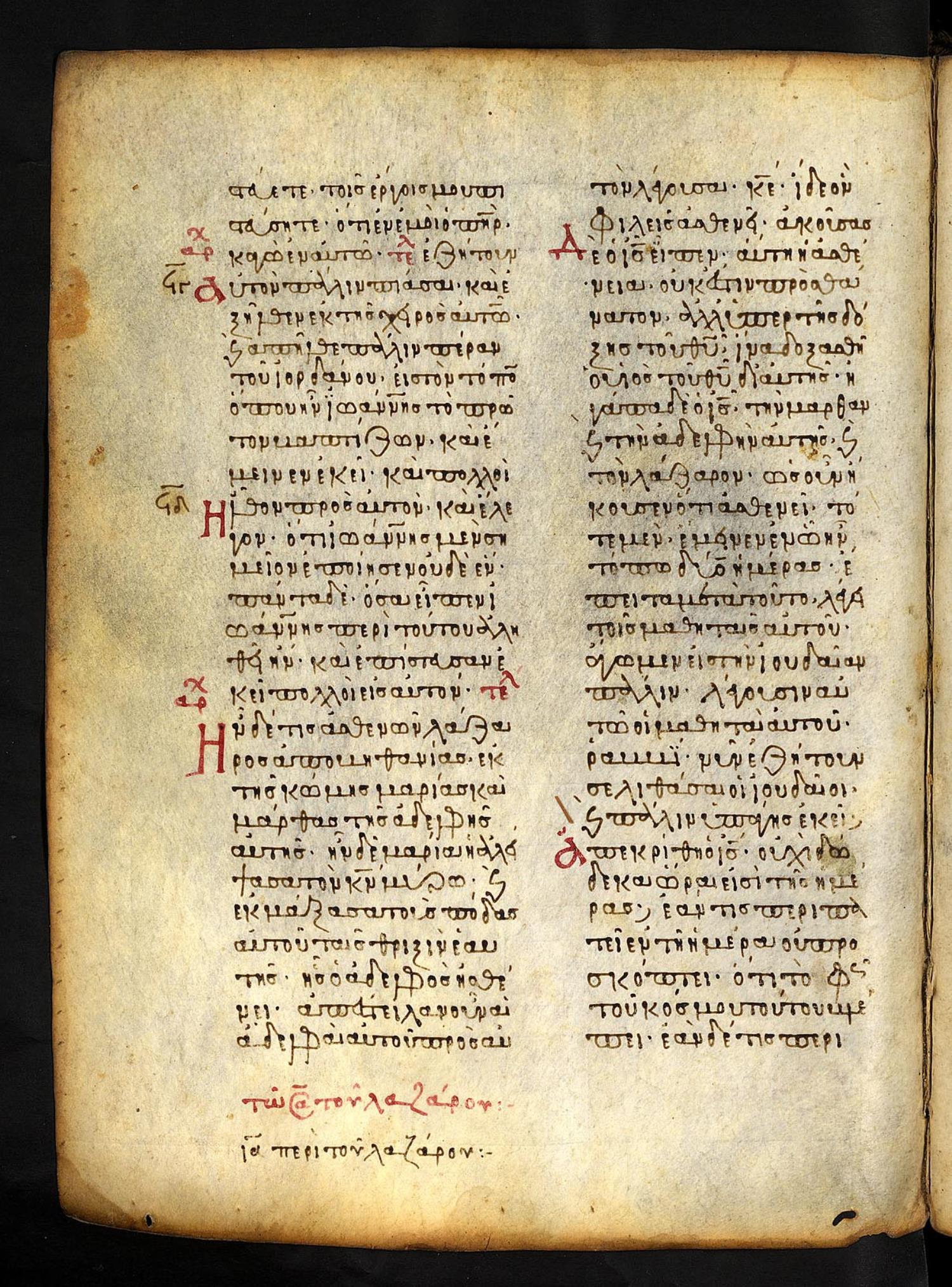 Ἦν δέ τις ἀσθενῶν, Λάζαρος ἀπὸ Βηθανίας ἐκ τῆς κώμης Μαρίας καὶ Μάρθας τῆς ἀδελφῆς αὐτῆς.