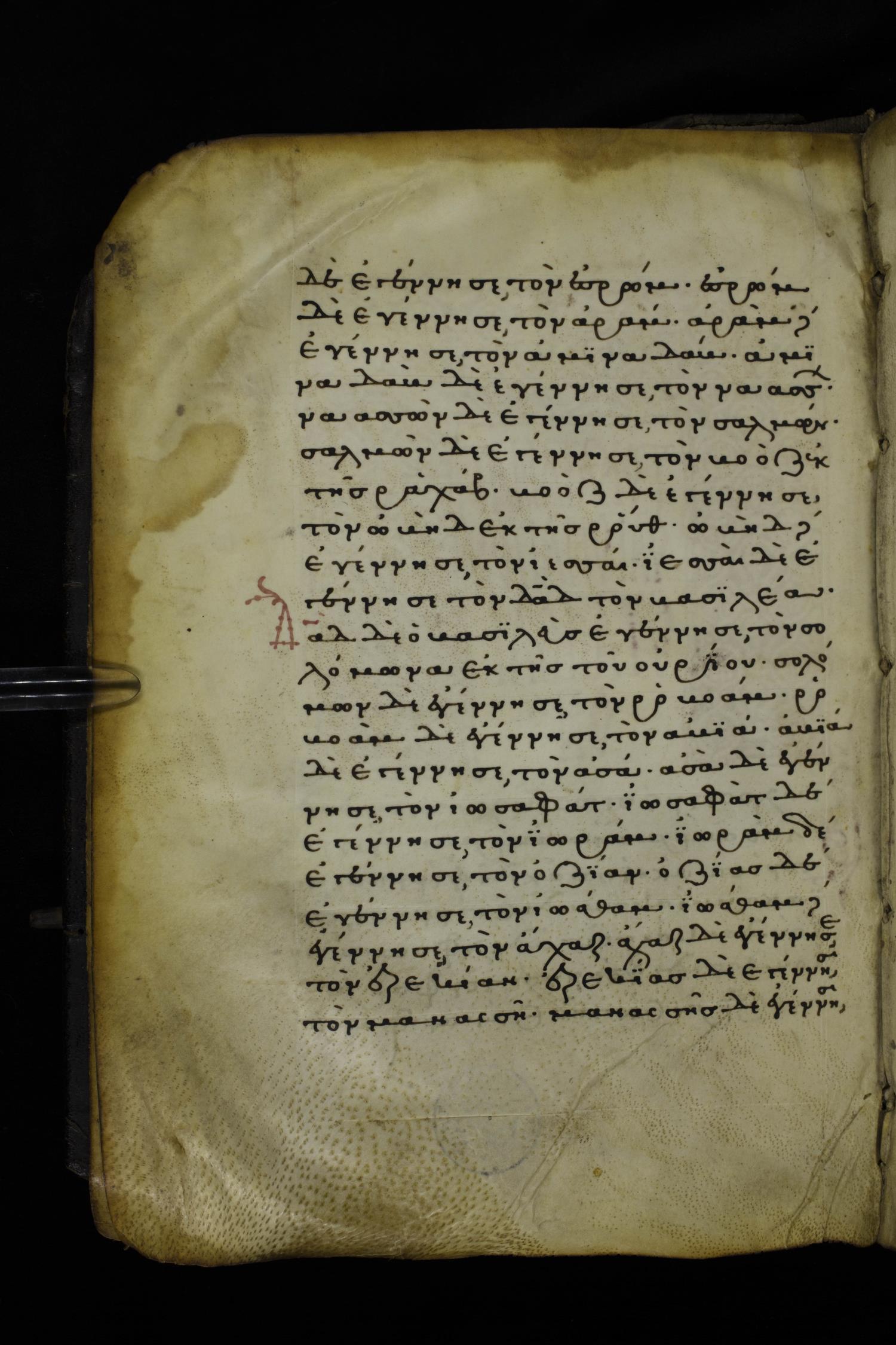 Thirteenth or fourteenth century minuscule of the Gospels on parchment; 312 leaves, 1 column, 19-22 lines per column. Images were taken at the National Library of Greece in Athens.