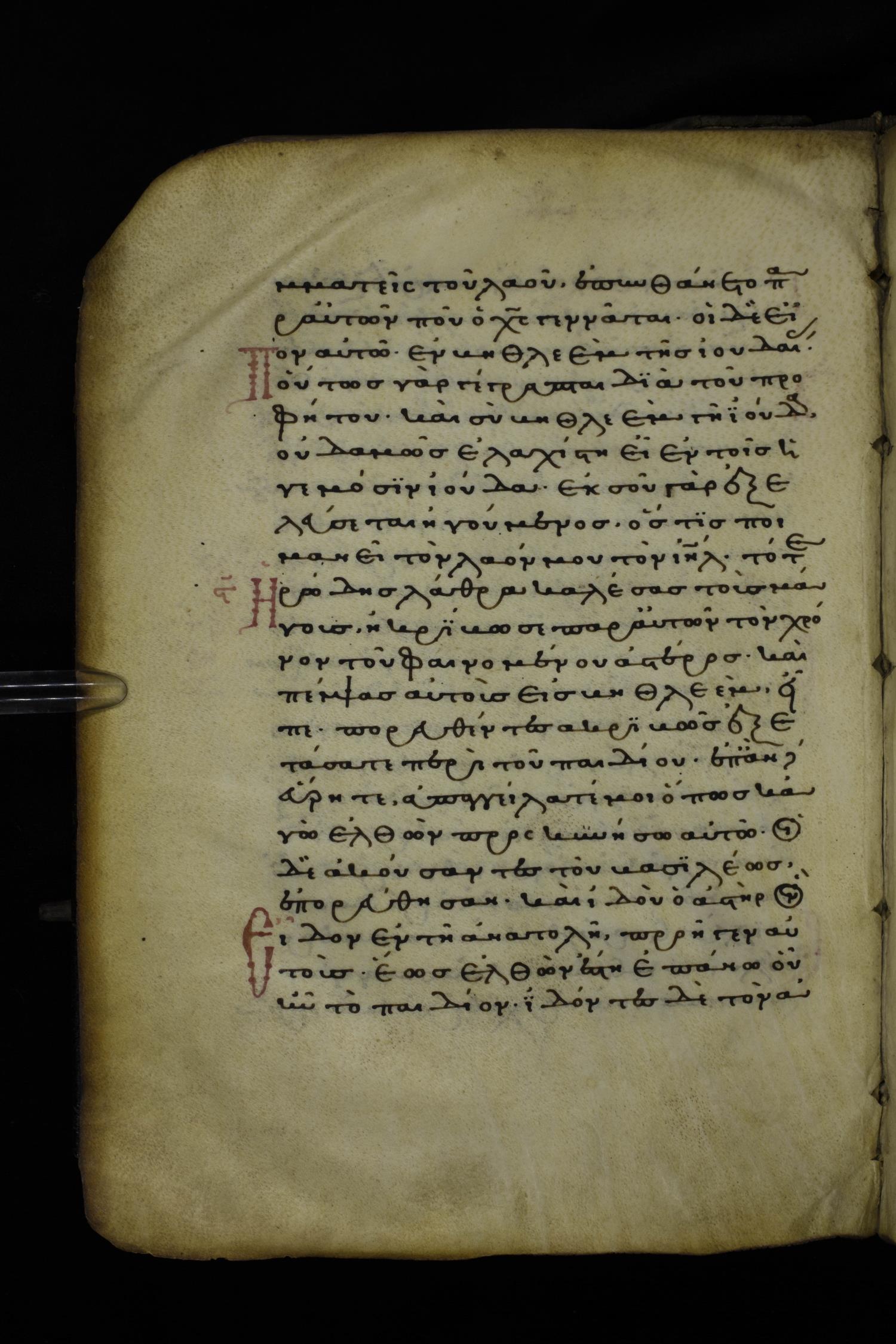 Thirteenth or fourteenth century minuscule of the Gospels on parchment; 312 leaves, 1 column, 19-22 lines per column. Images were taken at the National Library of Greece in Athens.