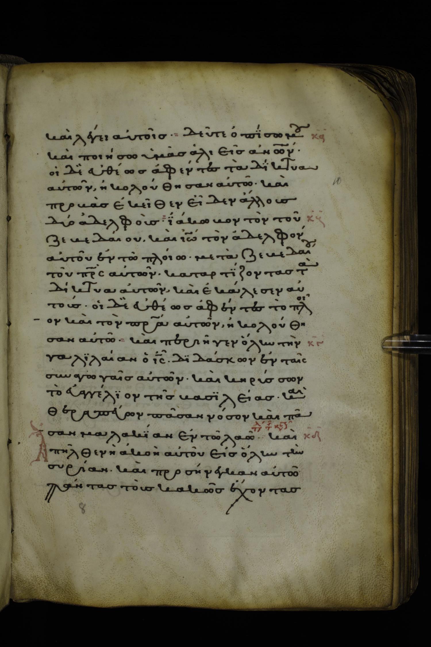 Thirteenth or fourteenth century minuscule of the Gospels on parchment; 312 leaves, 1 column, 19-22 lines per column. Images were taken at the National Library of Greece in Athens.