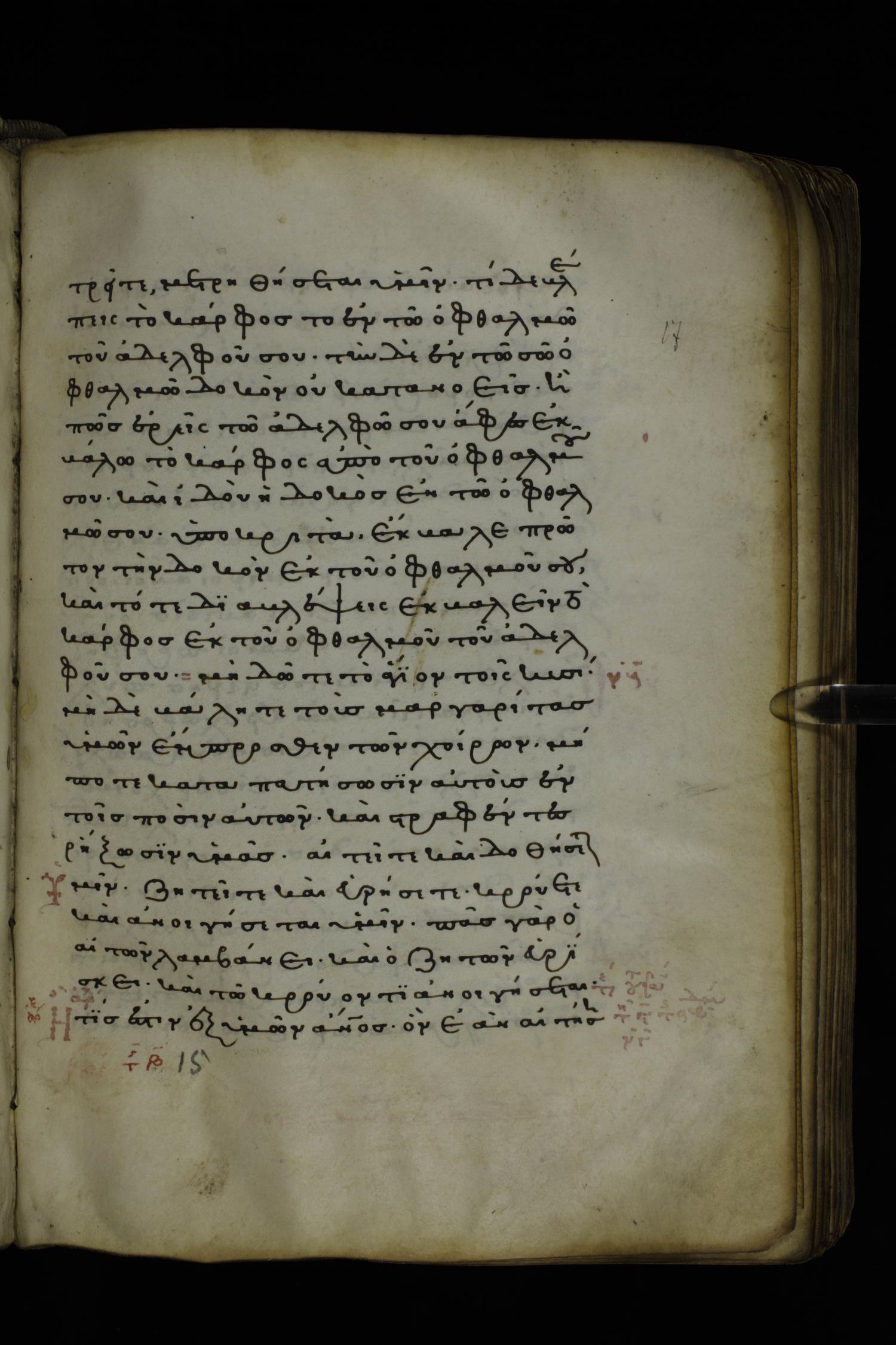 Thirteenth or fourteenth century minuscule of the Gospels on parchment; 312 leaves, 1 column, 19-22 lines per column. Images were taken at the National Library of Greece in Athens.