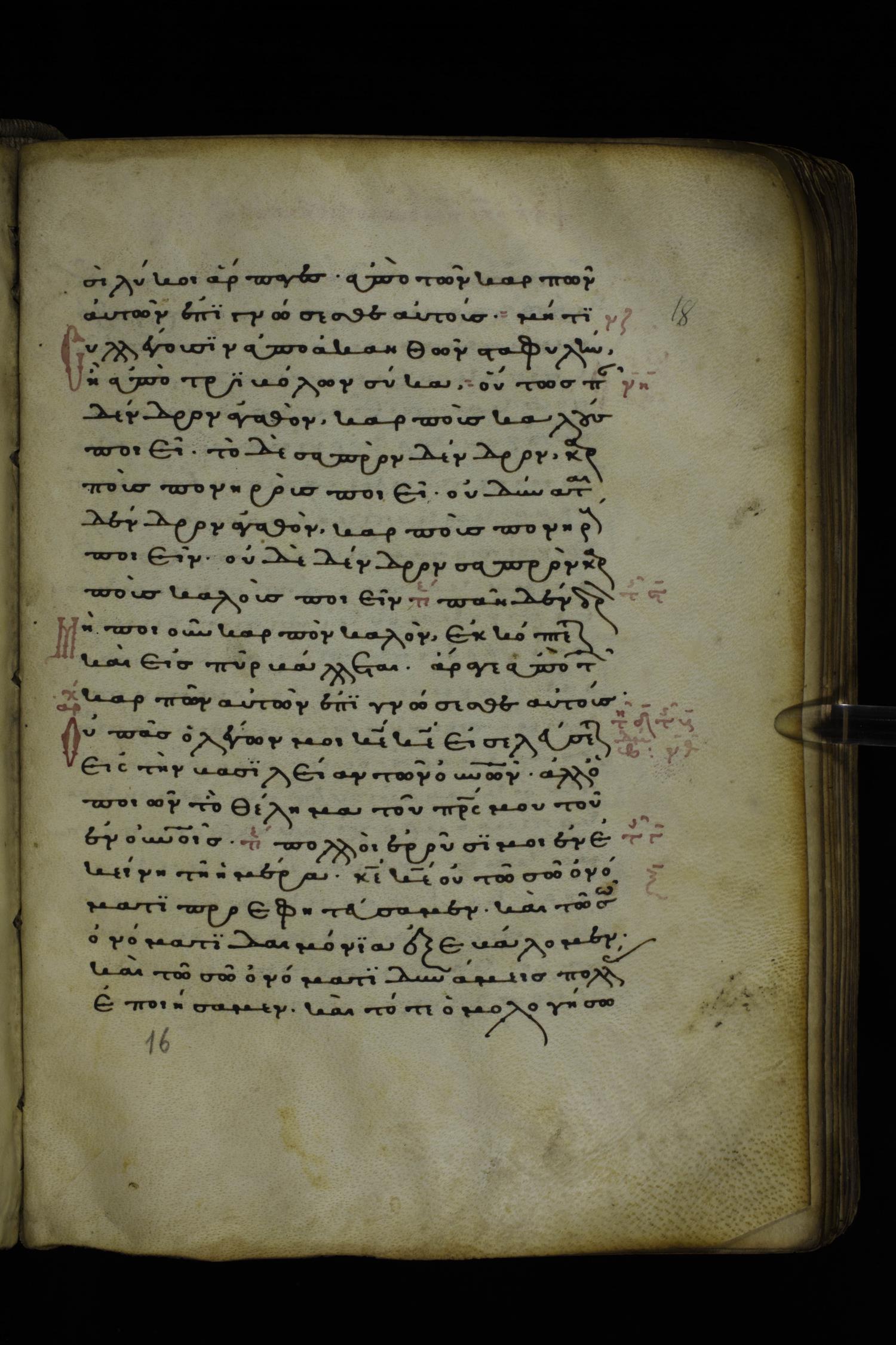 Thirteenth or fourteenth century minuscule of the Gospels on parchment; 312 leaves, 1 column, 19-22 lines per column. Images were taken at the National Library of Greece in Athens.