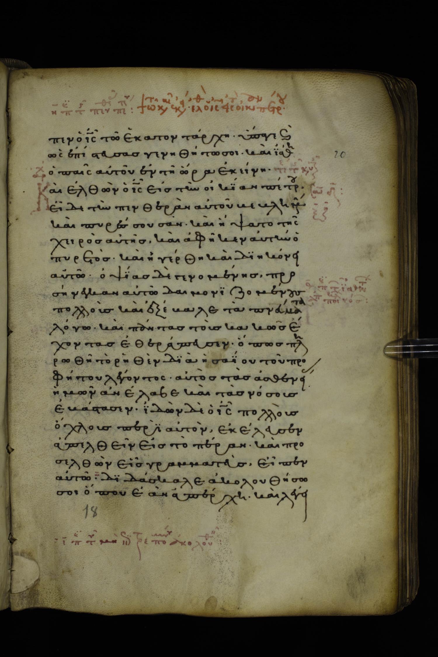Thirteenth or fourteenth century minuscule of the Gospels on parchment; 312 leaves, 1 column, 19-22 lines per column. Images were taken at the National Library of Greece in Athens.
