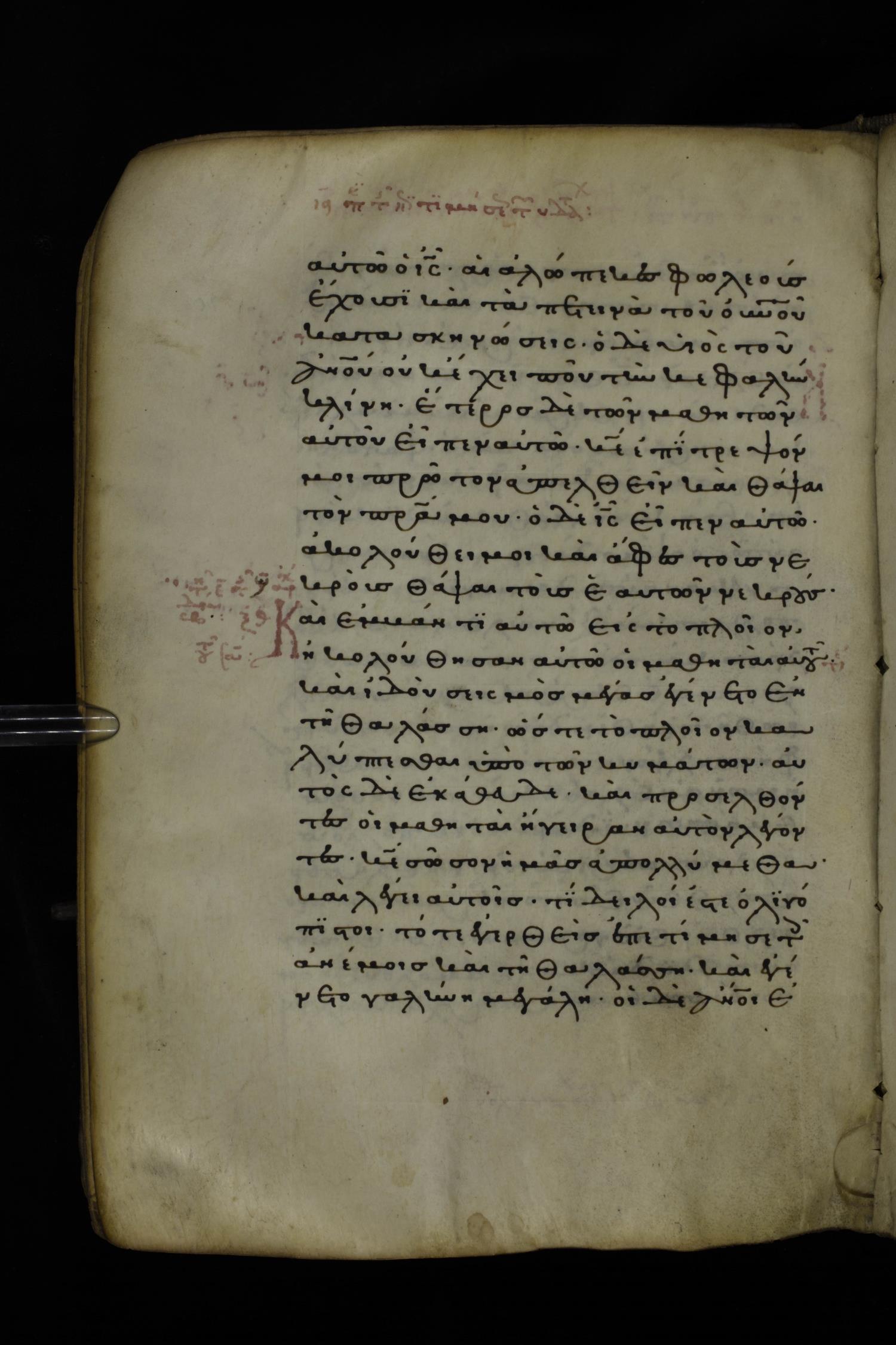 Thirteenth or fourteenth century minuscule of the Gospels on parchment; 312 leaves, 1 column, 19-22 lines per column. Images were taken at the National Library of Greece in Athens.