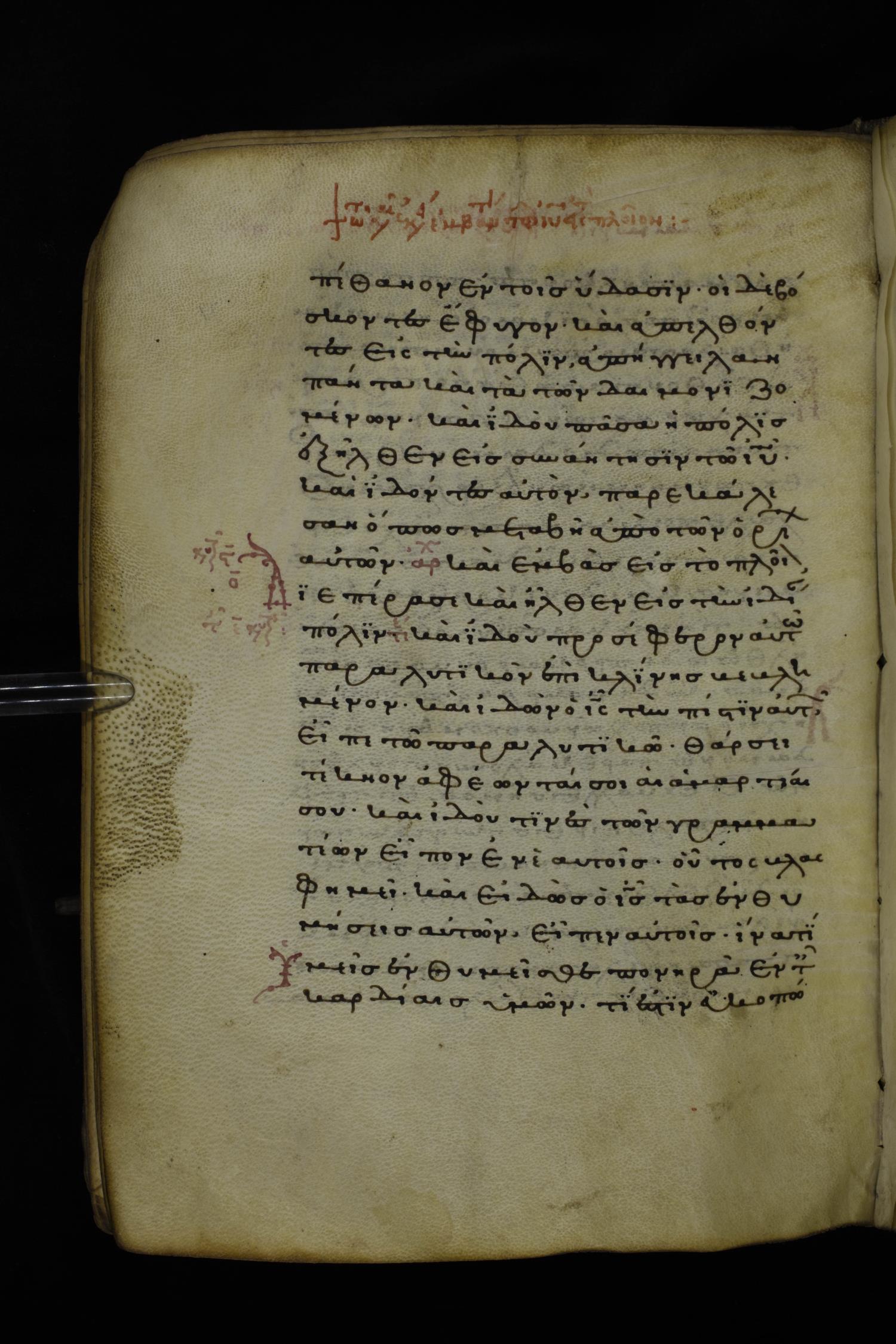 Thirteenth or fourteenth century minuscule of the Gospels on parchment; 312 leaves, 1 column, 19-22 lines per column. Images were taken at the National Library of Greece in Athens.