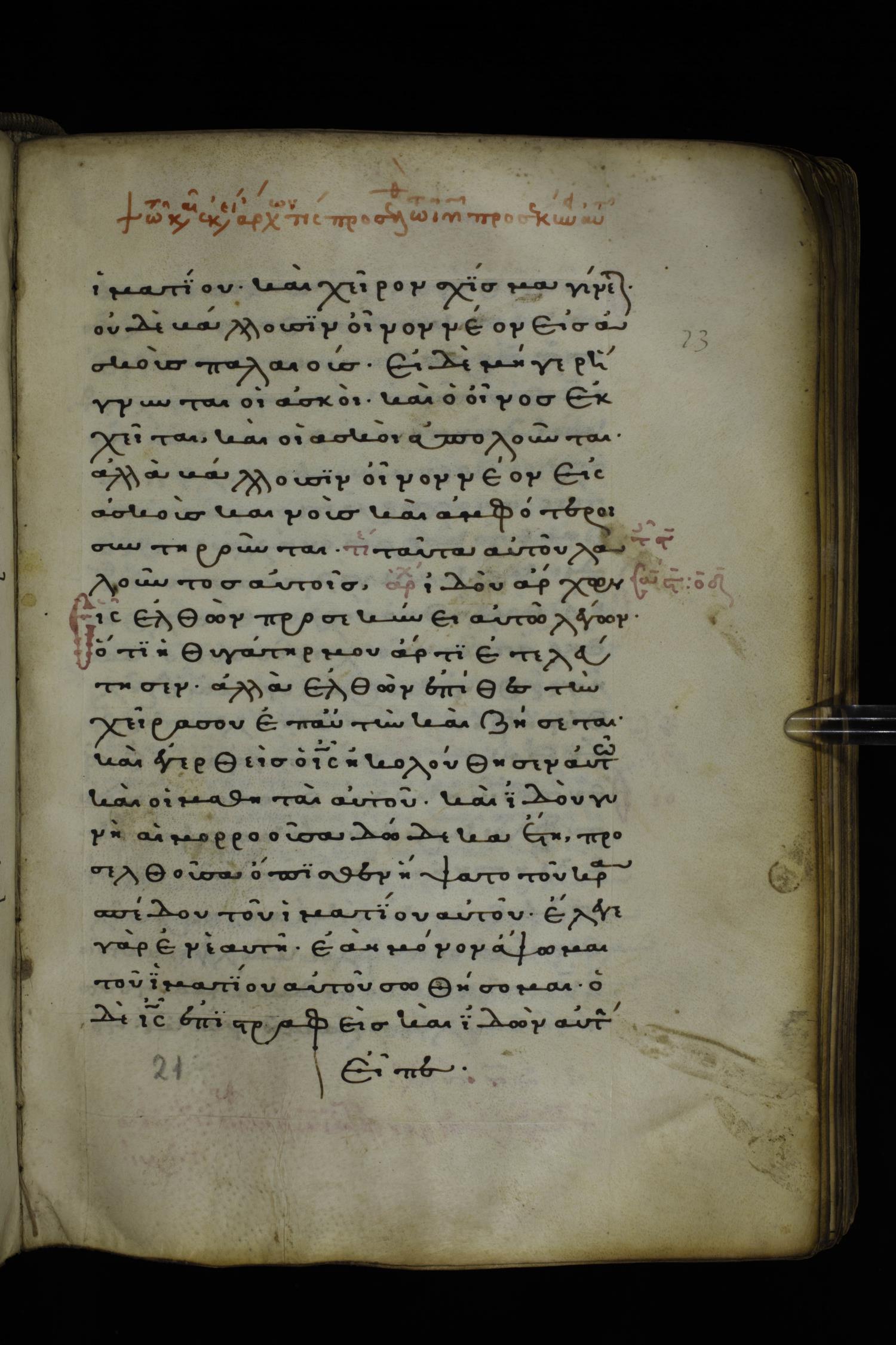 Thirteenth or fourteenth century minuscule of the Gospels on parchment; 312 leaves, 1 column, 19-22 lines per column. Images were taken at the National Library of Greece in Athens.