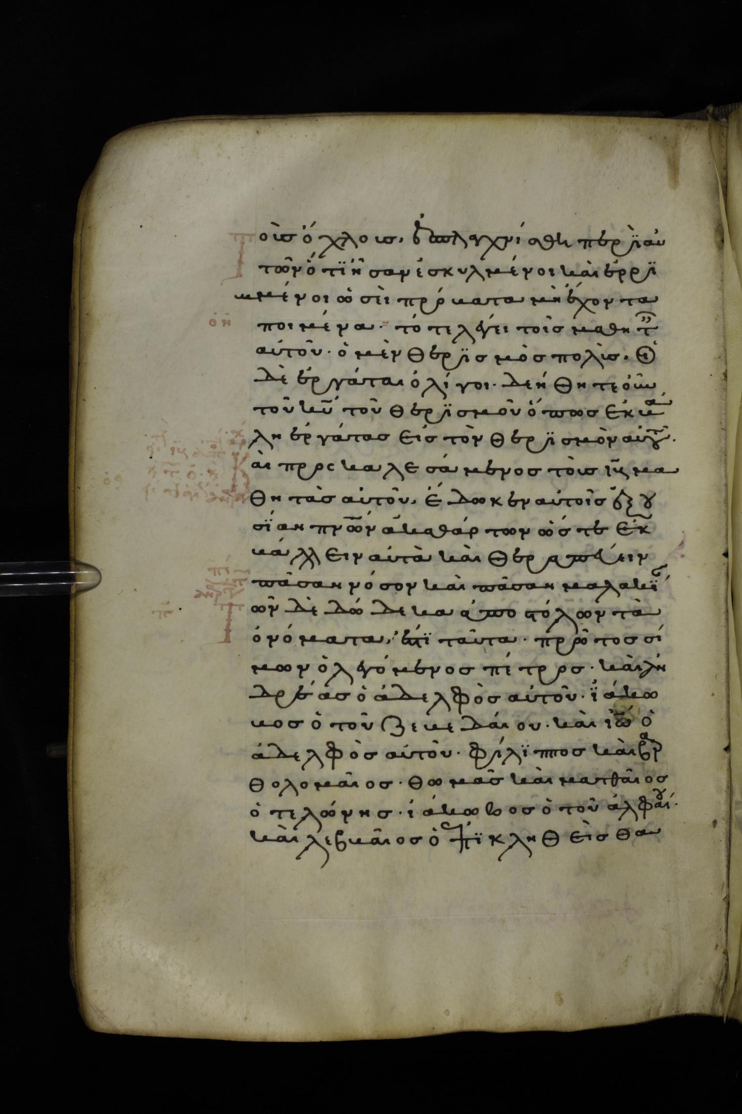 Thirteenth or fourteenth century minuscule of the Gospels on parchment; 312 leaves, 1 column, 19-22 lines per column. Images were taken at the National Library of Greece in Athens.