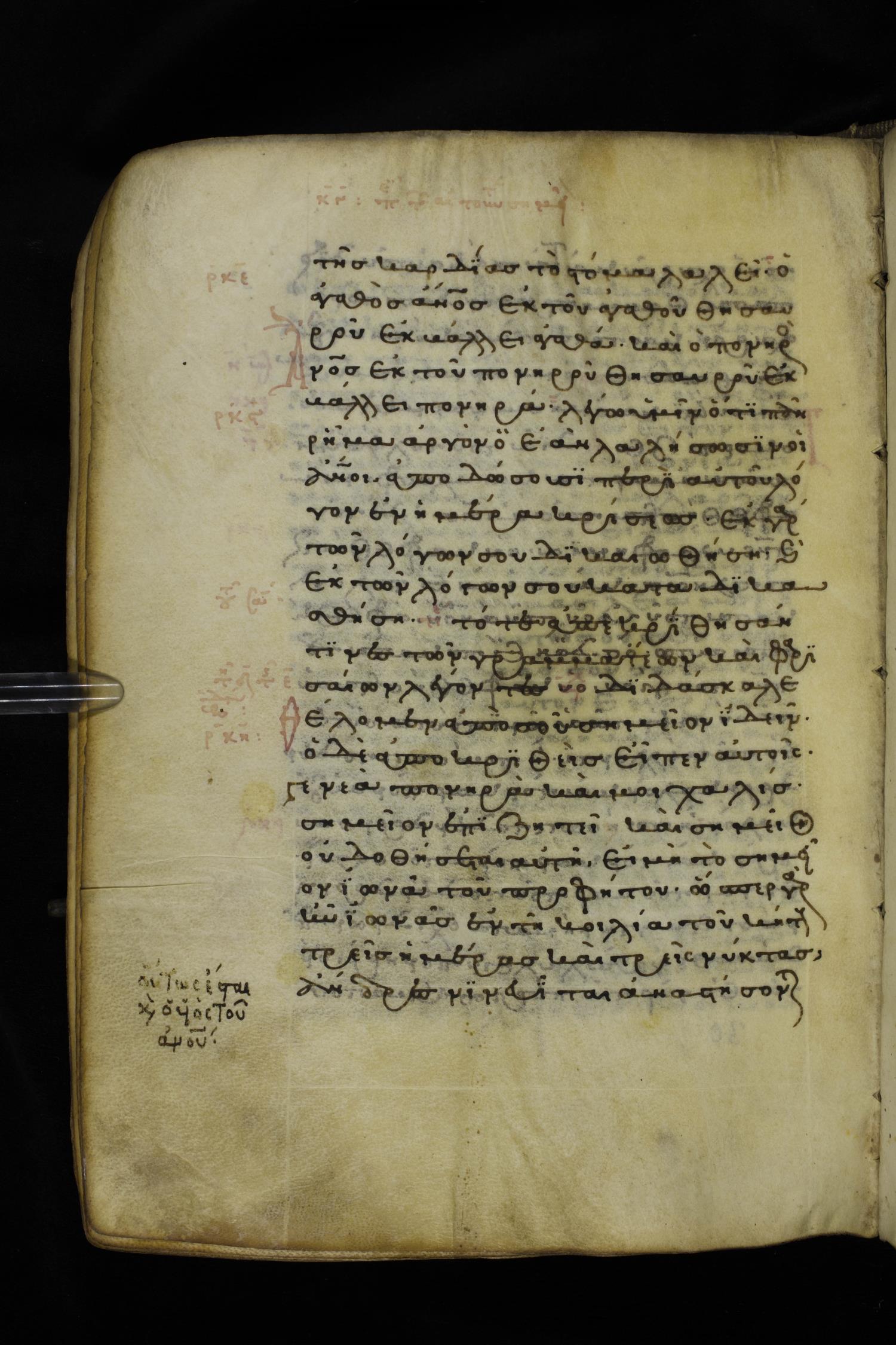 Thirteenth or fourteenth century minuscule of the Gospels on parchment; 312 leaves, 1 column, 19-22 lines per column. Images were taken at the National Library of Greece in Athens.