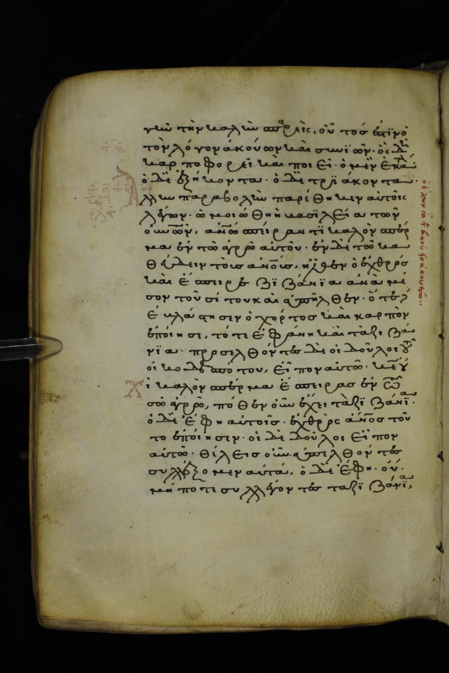 Thirteenth or fourteenth century minuscule of the Gospels on parchment; 312 leaves, 1 column, 19-22 lines per column. Images were taken at the National Library of Greece in Athens.
