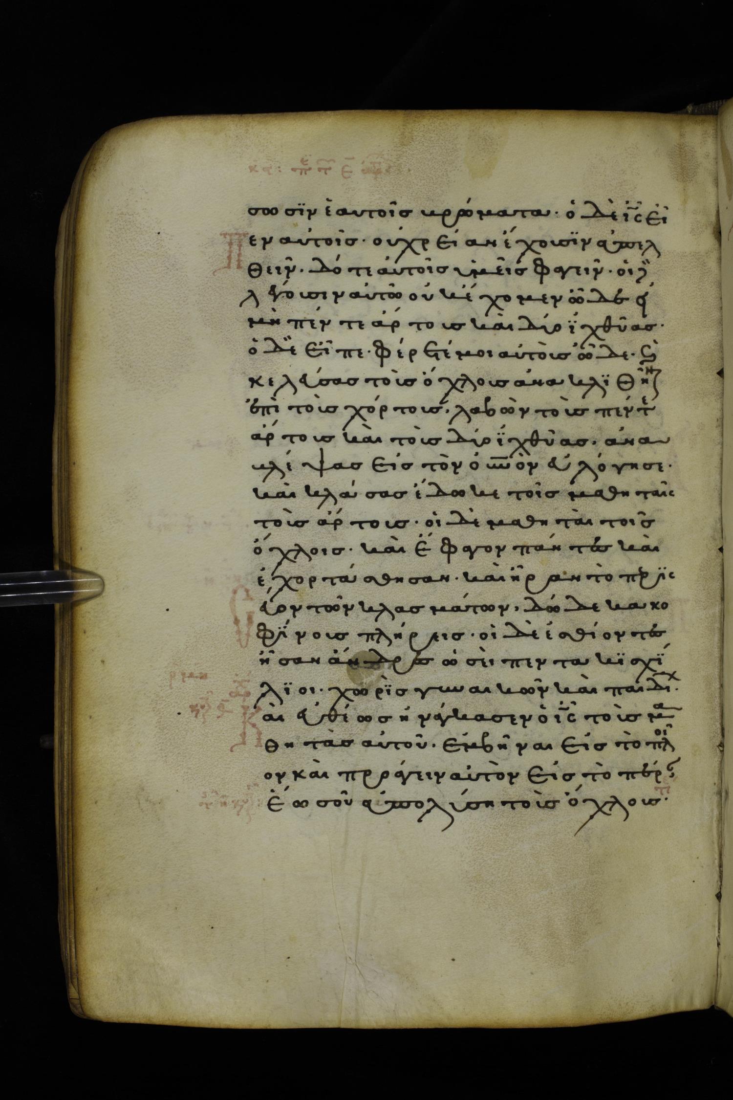 Thirteenth or fourteenth century minuscule of the Gospels on parchment; 312 leaves, 1 column, 19-22 lines per column. Images were taken at the National Library of Greece in Athens.
