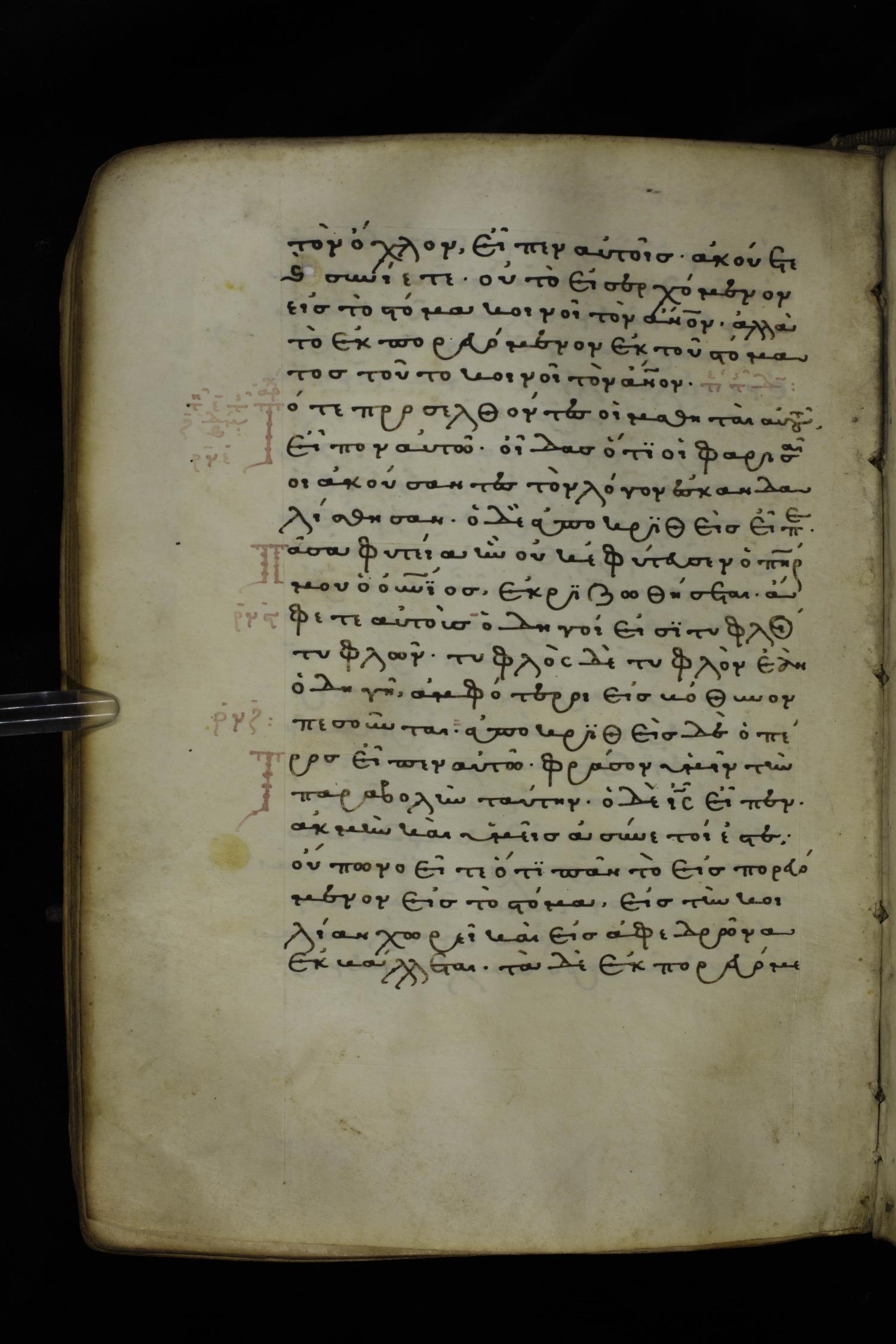 Thirteenth or fourteenth century minuscule of the Gospels on parchment; 312 leaves, 1 column, 19-22 lines per column. Images were taken at the National Library of Greece in Athens.