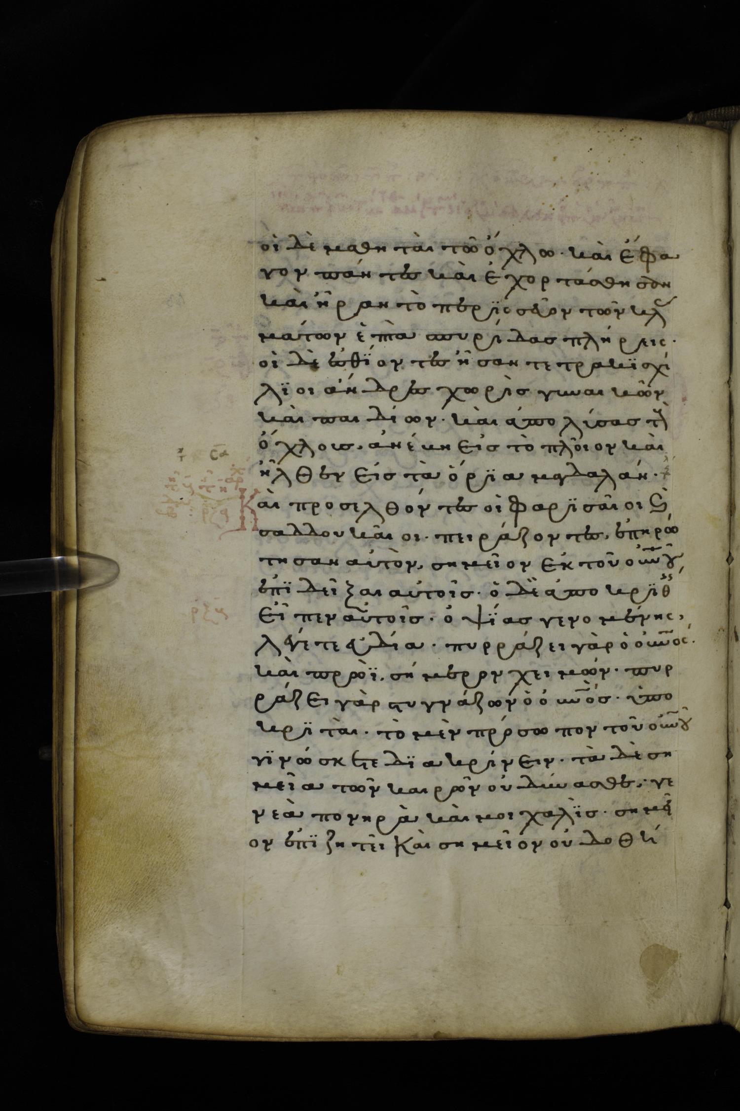 Thirteenth or fourteenth century minuscule of the Gospels on parchment; 312 leaves, 1 column, 19-22 lines per column. Images were taken at the National Library of Greece in Athens.